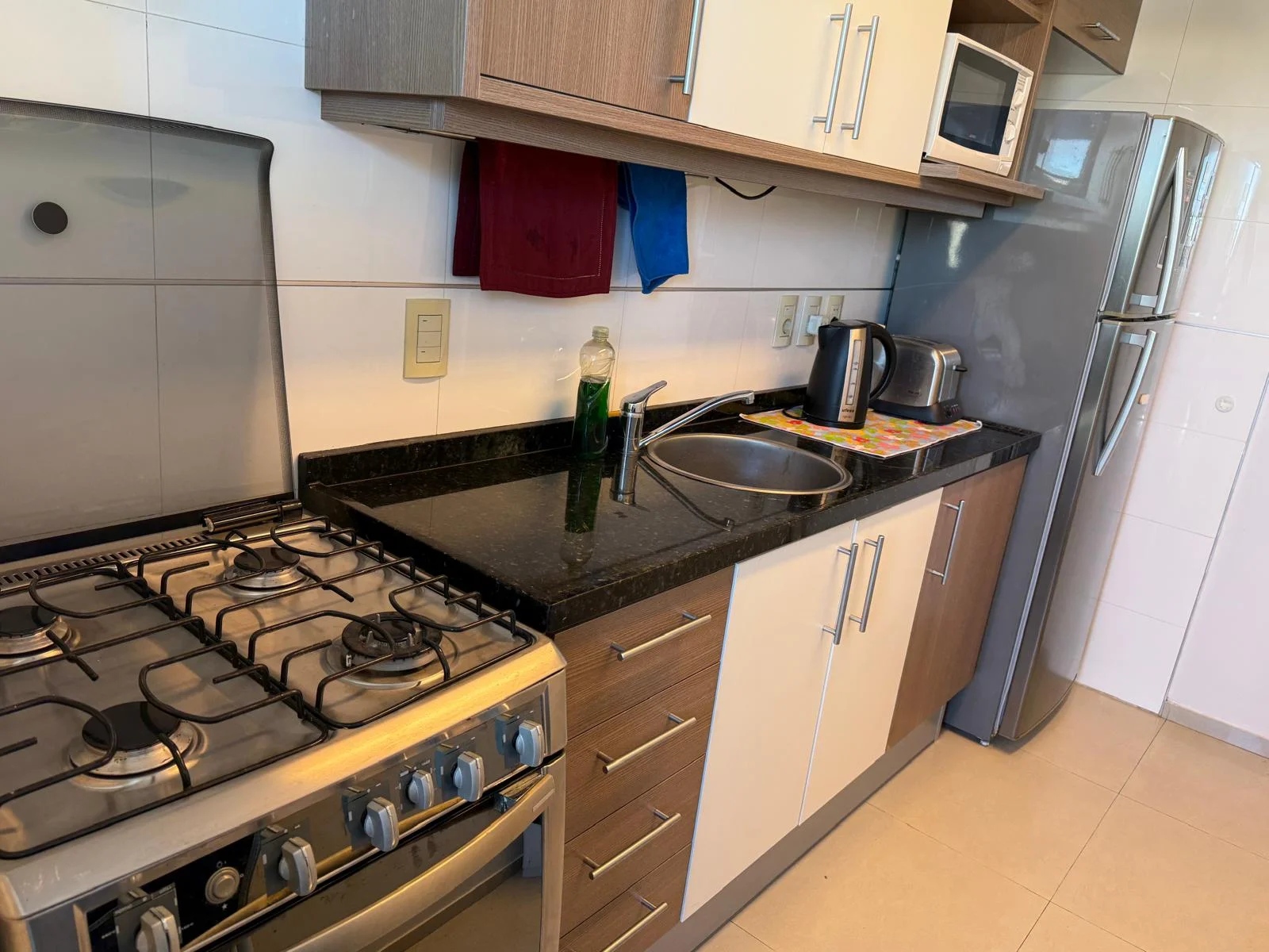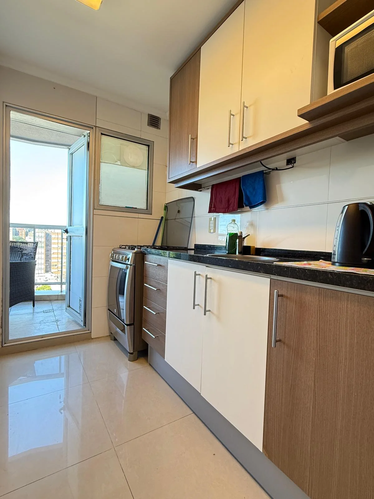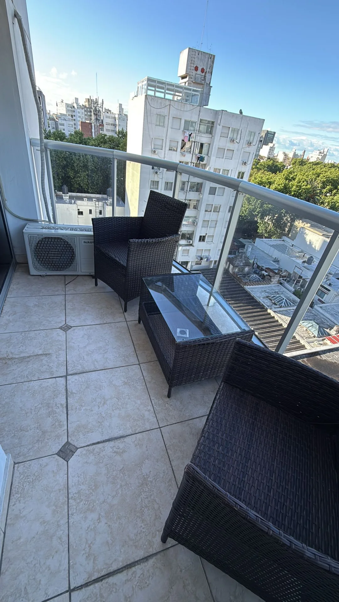 Living comedor con salida a terraza contrafrente, muy cómoda de 6m2 con vistas despejadas. Cocina definida conectada a la terraza.