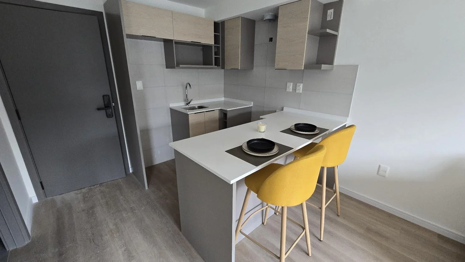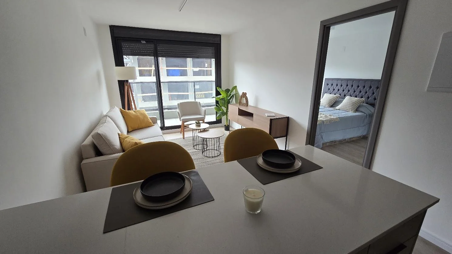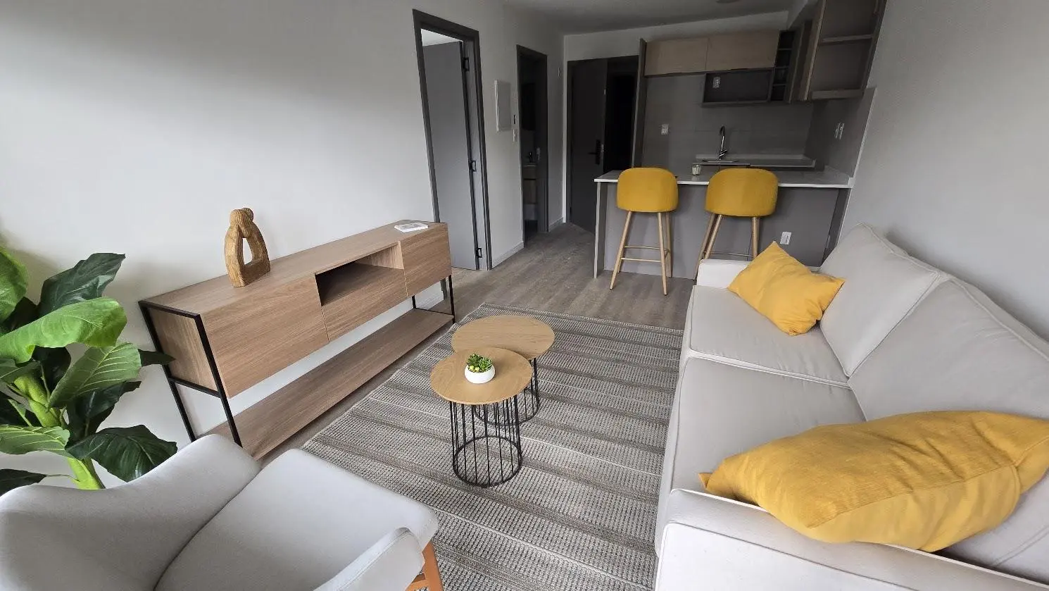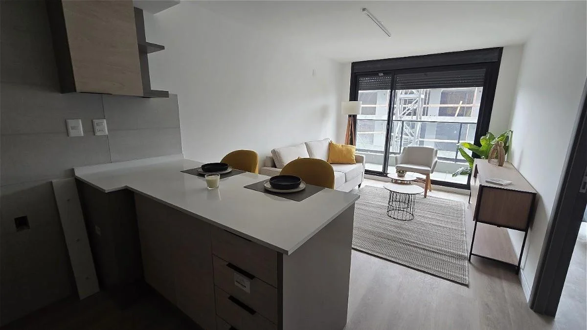 Cuenta con living comedor con cocina integrada con muebles aéreos y bajo mesada. 1 dormitorio con placar. Terraza a lo ancho del apartamento de más de 6m2.