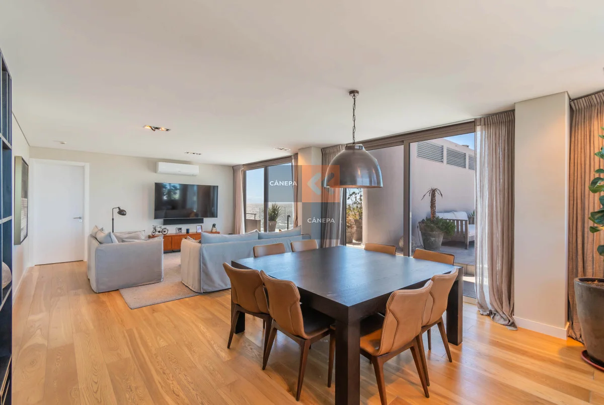 Living comedor con salida a gran terraza con vista a la rambla