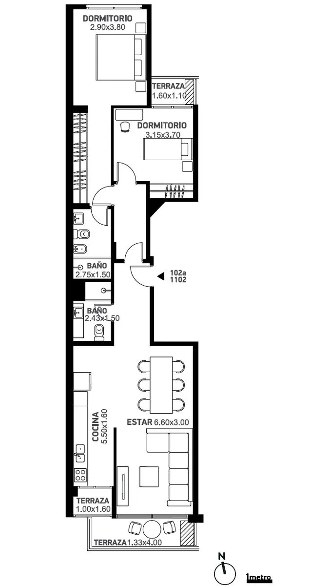 Cuenta con terraza al frente y al contrafrente.