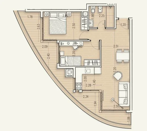 Compuesto por tres torres de elegante arquitectura, ofrece unidades de 1 y 2 dormitorios pensadas para adaptarse a un estilo de vida dinámico. Sus fachadas de hormigón y barandas vidriadas potencian la luminosidad y las visuales, regalando en cada apartamento perspectivas únicas que van desde el skyline urbano hasta el horizonte del mar. El proyecto se completa con un zócalo activo de acceso público que integra un mini centro comercial con 14 locales, áreas de juegos infantiles y espacios para mascotas, creando un verdadero punto de encuentro y servicios.