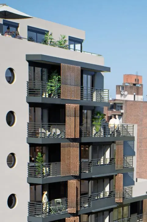 El edificio combina calidad , diseño y comodidad, distribuido en 70 unidades con opciones de monoambientes, 1 y 2 dormitorios cálidos y espaciosos, diseñados para un estilo de vida moderno.