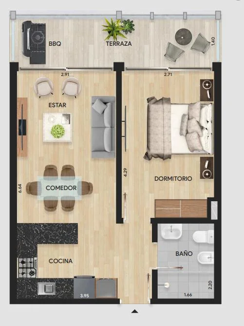 Apartamentos : monoambiente, 1 y 2 dormitorios