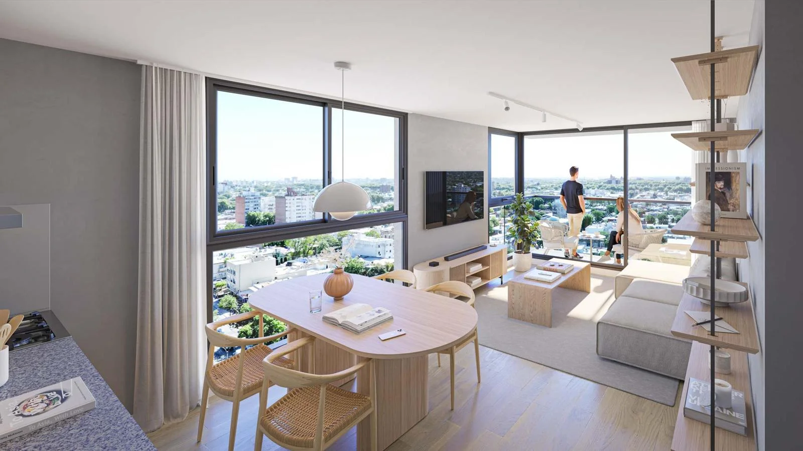 Además, contará en el piso 16 con un rooftop con terraza panorámica perimetral y un salón de usos múltiples con cocina, baño y parrillero.