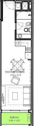 32 m² interiores + 4,5 m² de terraza | Monoambiente | 1 baño | Al frente
