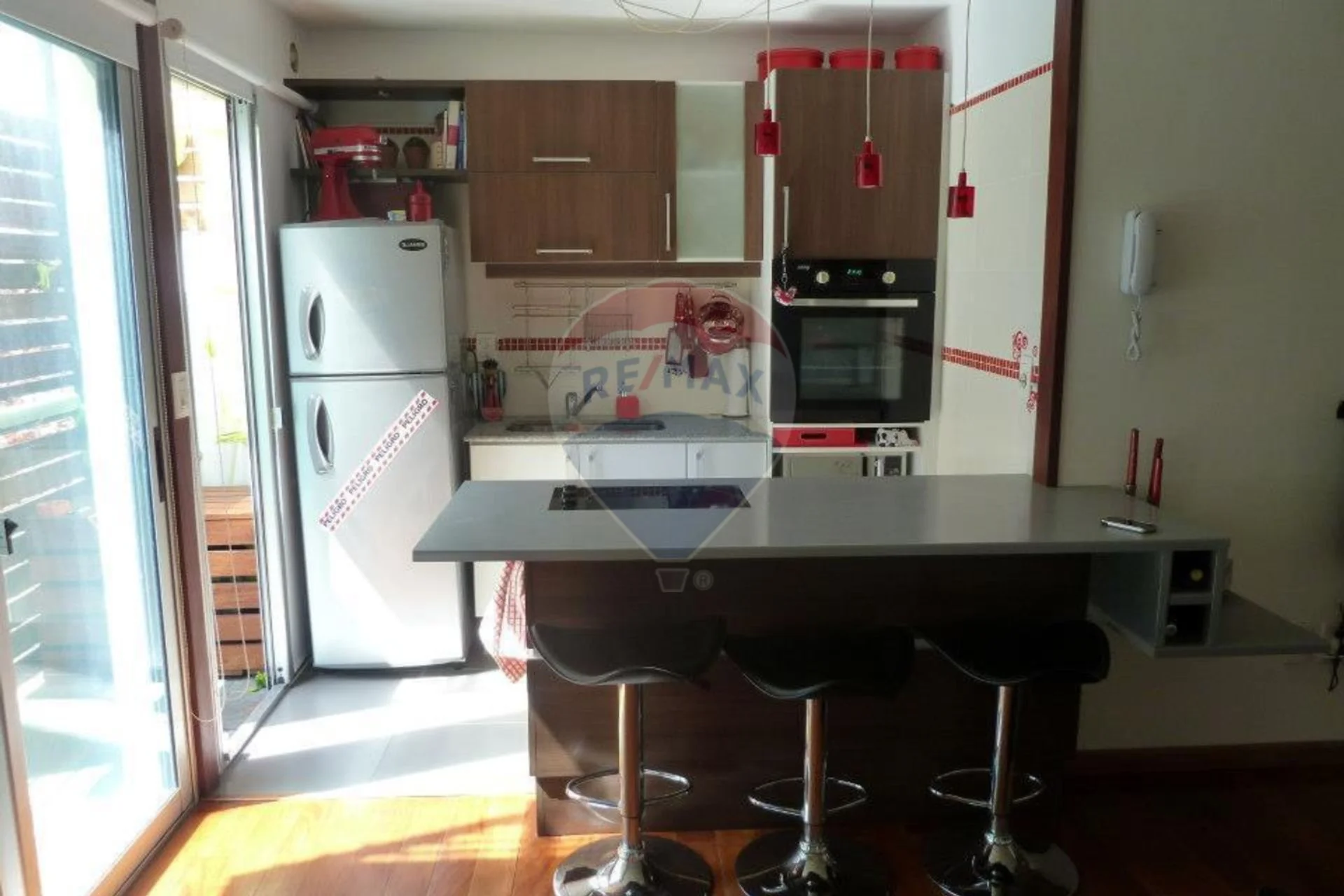 Cocina semi integrada al living con una amplia isla con anafe de vitrocerámica. Placares sobre y bajo mesada.