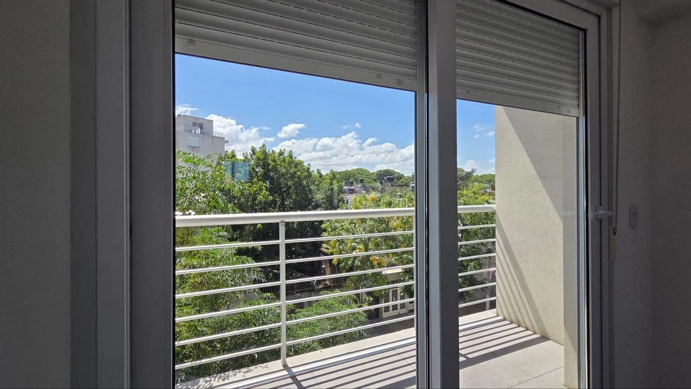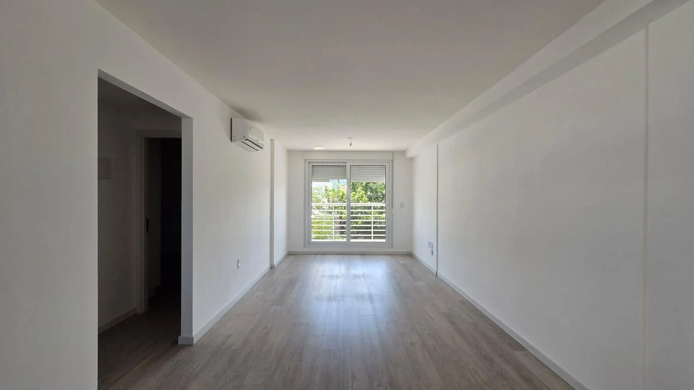 Living comedor al frente con AA y salida a balcón con orientación norte.
