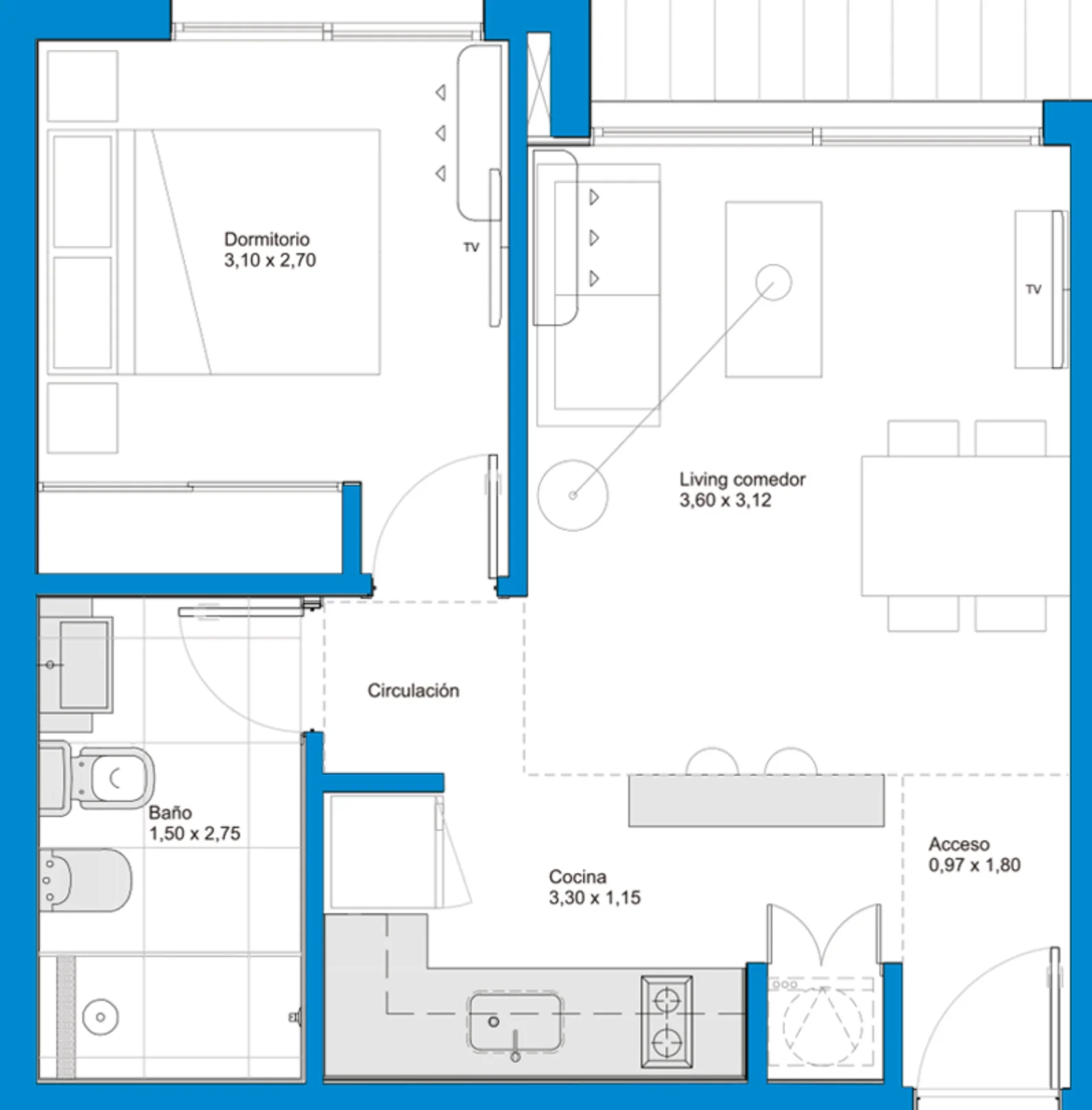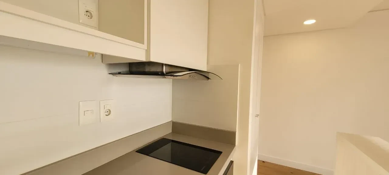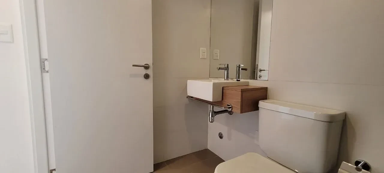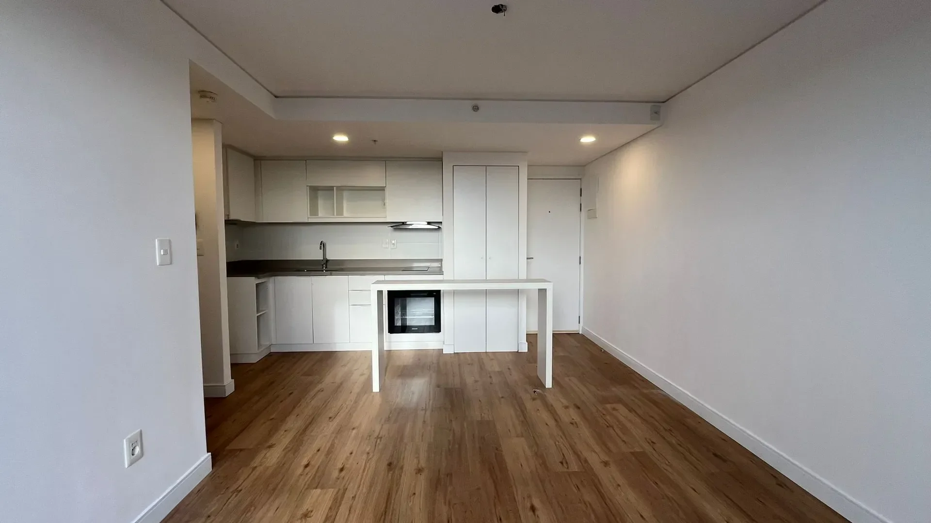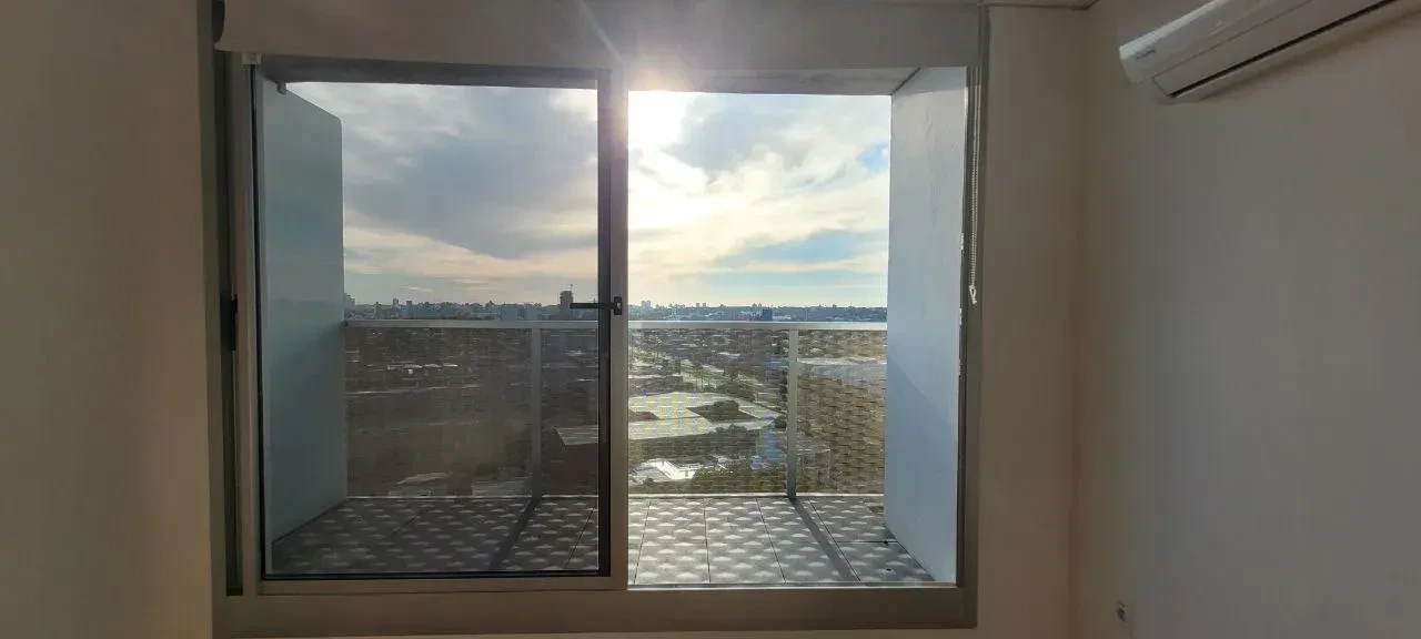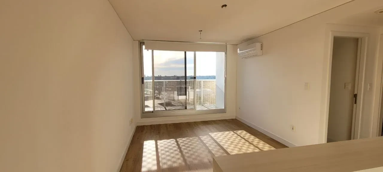 Living con ventanal y balcón, cocina integrada con desayunador, equipada con horno Samsung digital empotrado, anafe vitrocerámico Samsung, campana extractora, calefón 40lts y aire acondicionado inverter 12000btu.