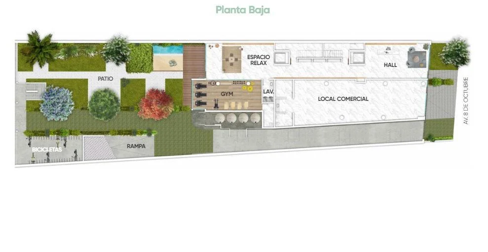 Contará con amenities de calidad como: piscina, espacio relax, gimnasio in -out equipado, cancha de futbol, cancha básquet, barbacoa equipada, terraza 360° con living de exterior, espacio cowork, sala de lectura, laundry de lavado y secado con app, racks de soporte para bicis, cargadores para autos eléctricos y ventanas doble vidrio hermético.