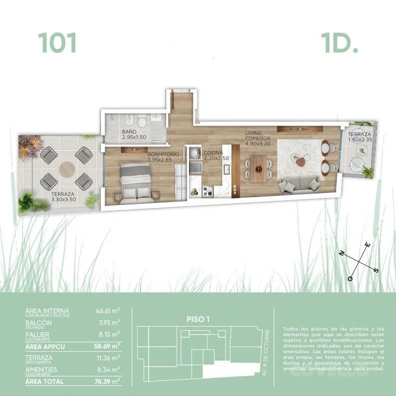 Ubicado en Av. 8 de octubre a pasos de la Av. Luis A. de Herrera, punto estratégico de la ciudad que te facilita el día a día. Ofrece a la venta monoambientes y apartamentos de 1 dormitorio.