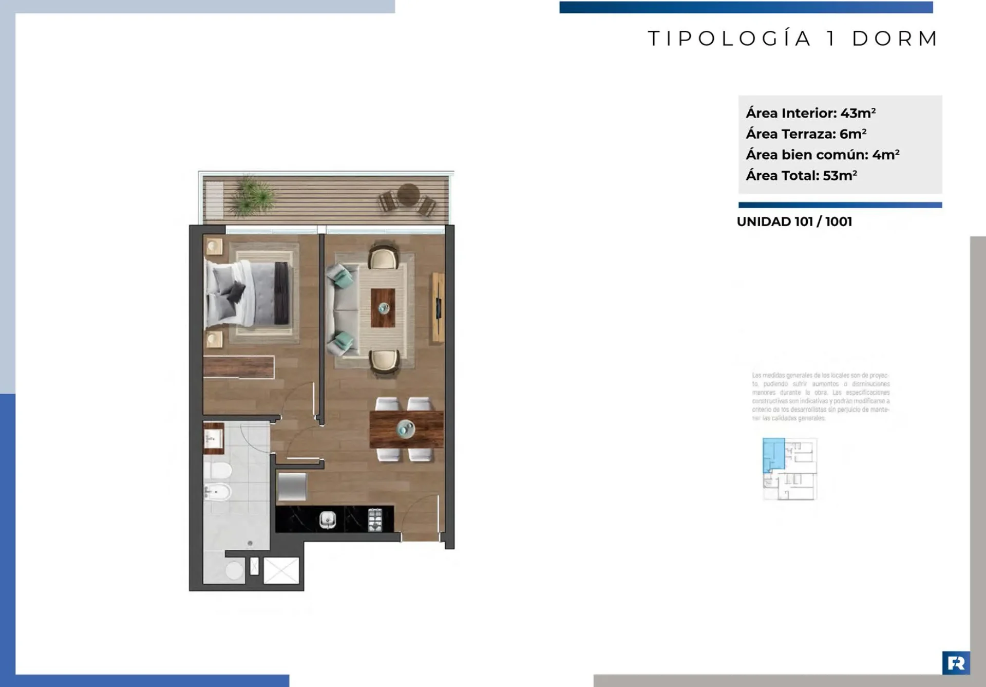 Apartamento de 1 dormitorio + terraza en piso 7 al frente desde $ 40.000.