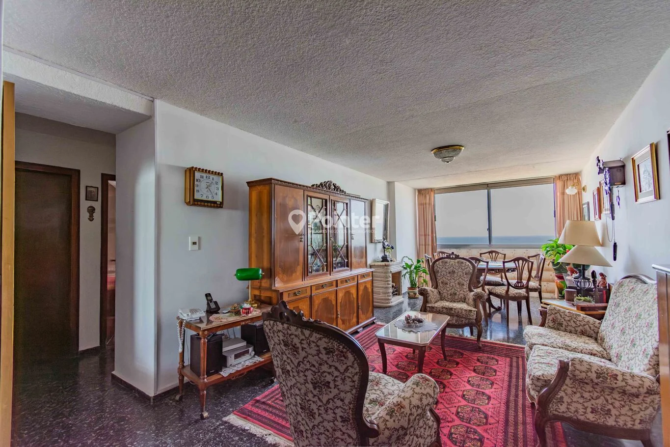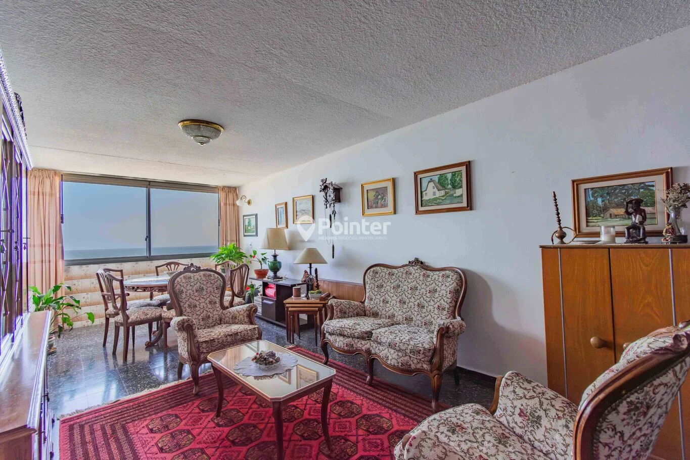 Al ingresar, nos recibe un living comedor amplio, muy luminoso, con ventanales de generosas dimensiones que enmarcan una vista completamente despejada hacia la Rambla y el Río de la Plata.