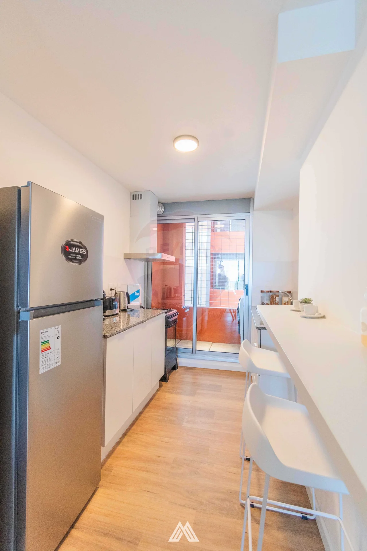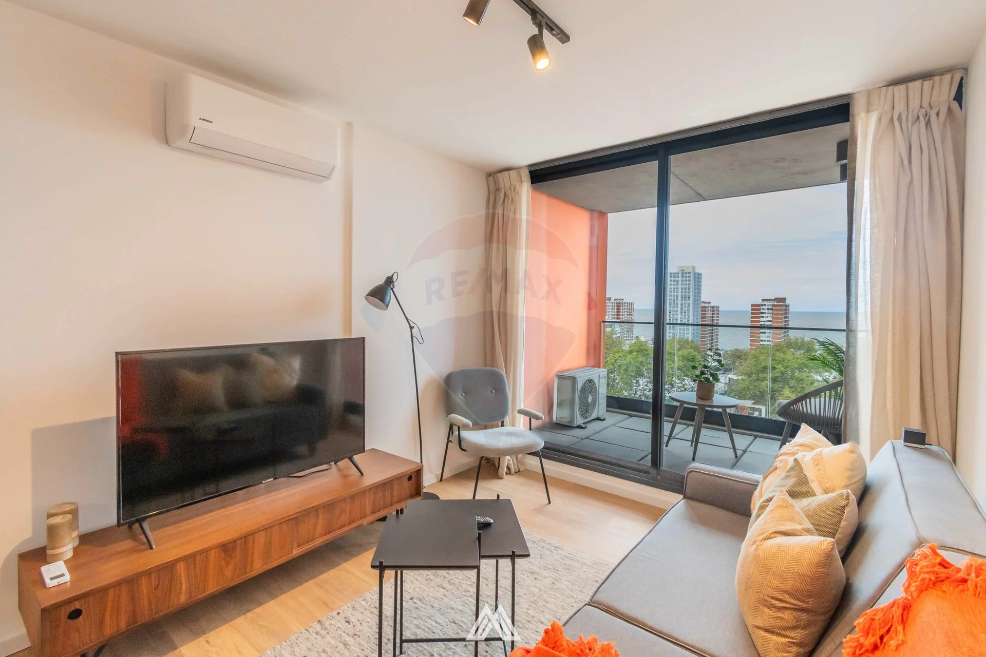 Unidad 906. Hall de acceso. Living comedor con salida a terraza con vista al mar. Cocina semi definida con doble mesada y espacio tipo barra desayunadora, mueble bajo mesada. Terraza de servicio con conexión para lavarropas. 2 dormitorios. Baño completo. Pisos de listones vinílicos de alto tránsito símil madera. Incluye kit básico de domótica con control de ingreso a través de una cerradura electrónica, control de iluminación y control de cortinas. Mediante costo adicional se puede obtener el kit premium que incluye control de climatización, de audio y video, simulador de presencia y cámaras de seguridad.