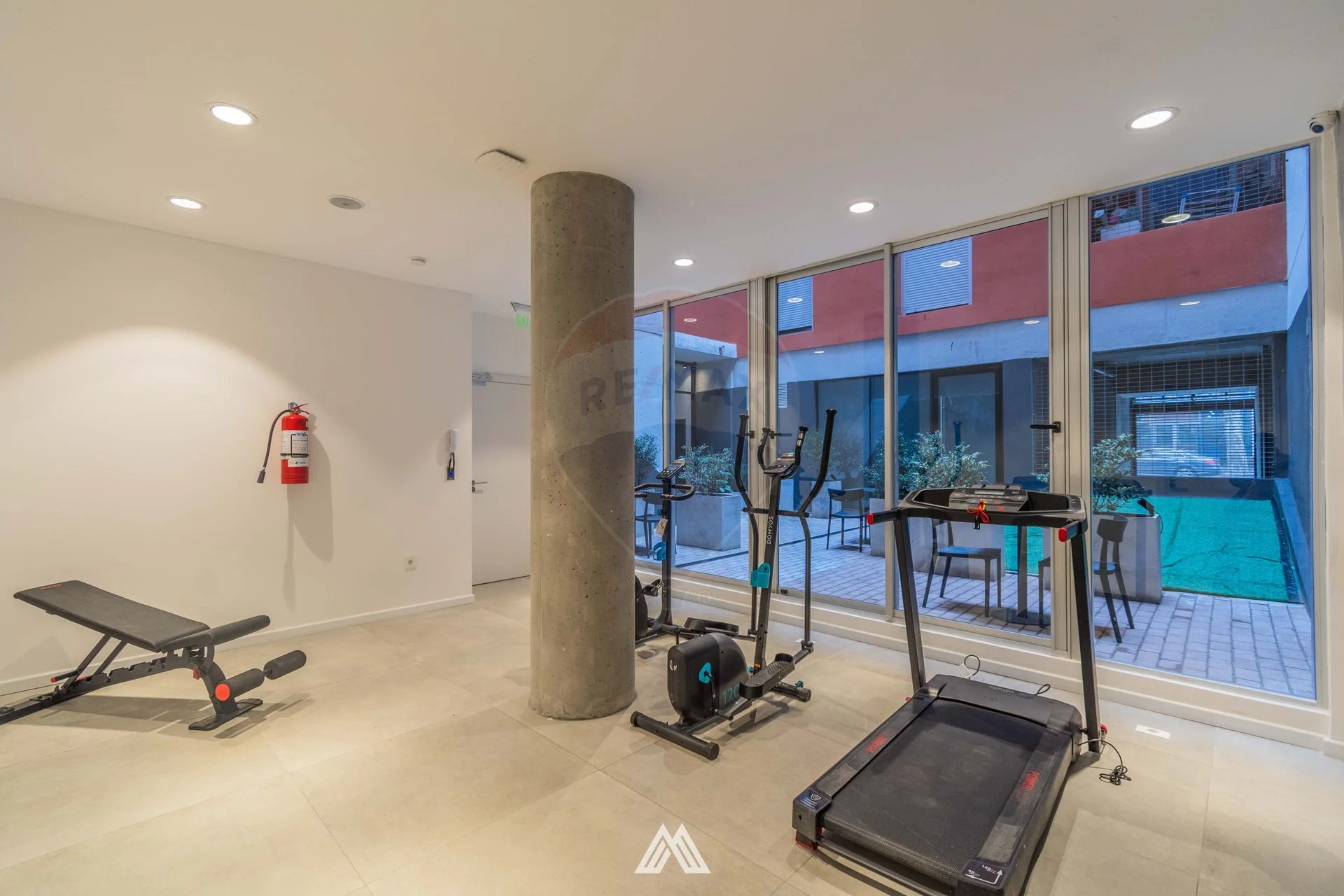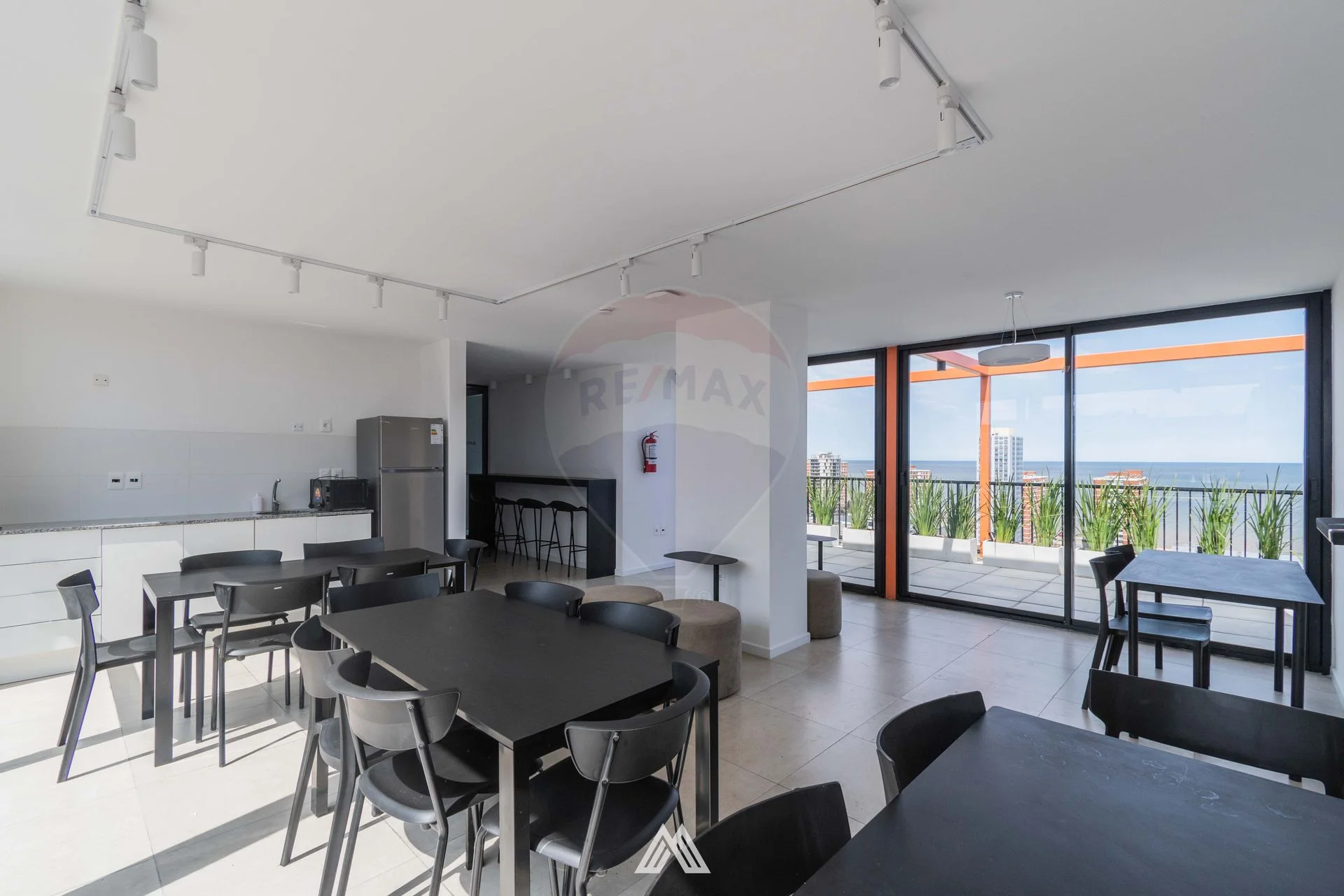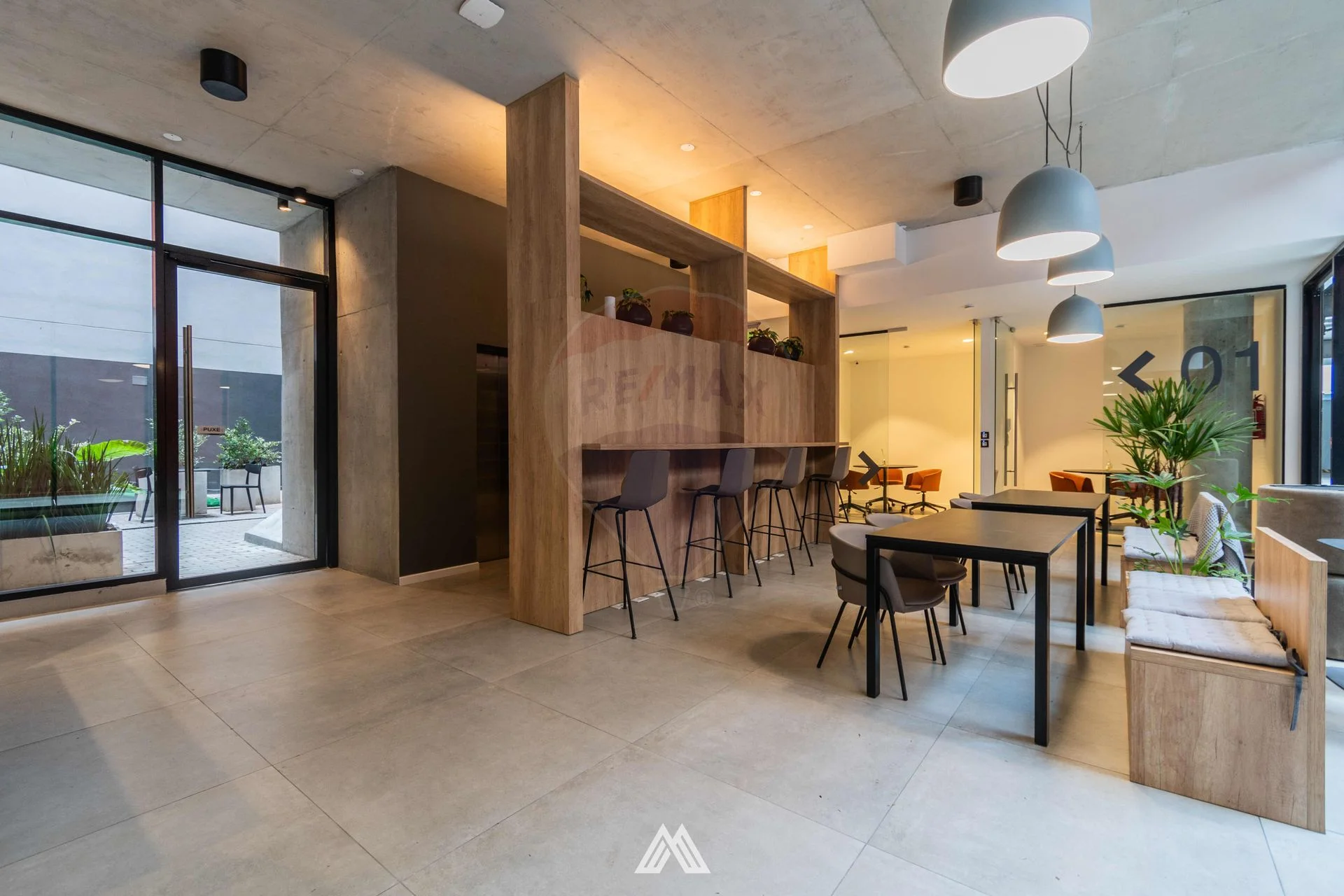 El ingreso al edificio funciona como espacio de cowork y está vinculado al patio interno y conectado a su vez con dos salas de reuniones y un gimnasio propios del edificio. En el ultimo piso se encuentra el Solarium, el Wet Spa, 4 Parrilleros, un Salón de Usos Múltiples y un Laundry con Tender.