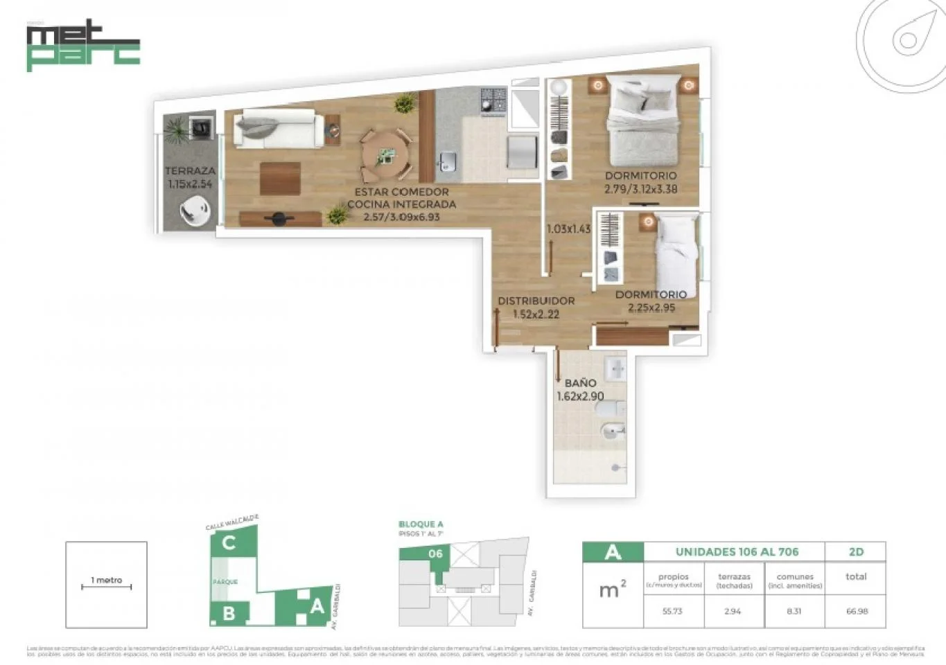 El edificio Met Parc se encuentra a pasos de Av. Garibaldi y Monte Caseros.