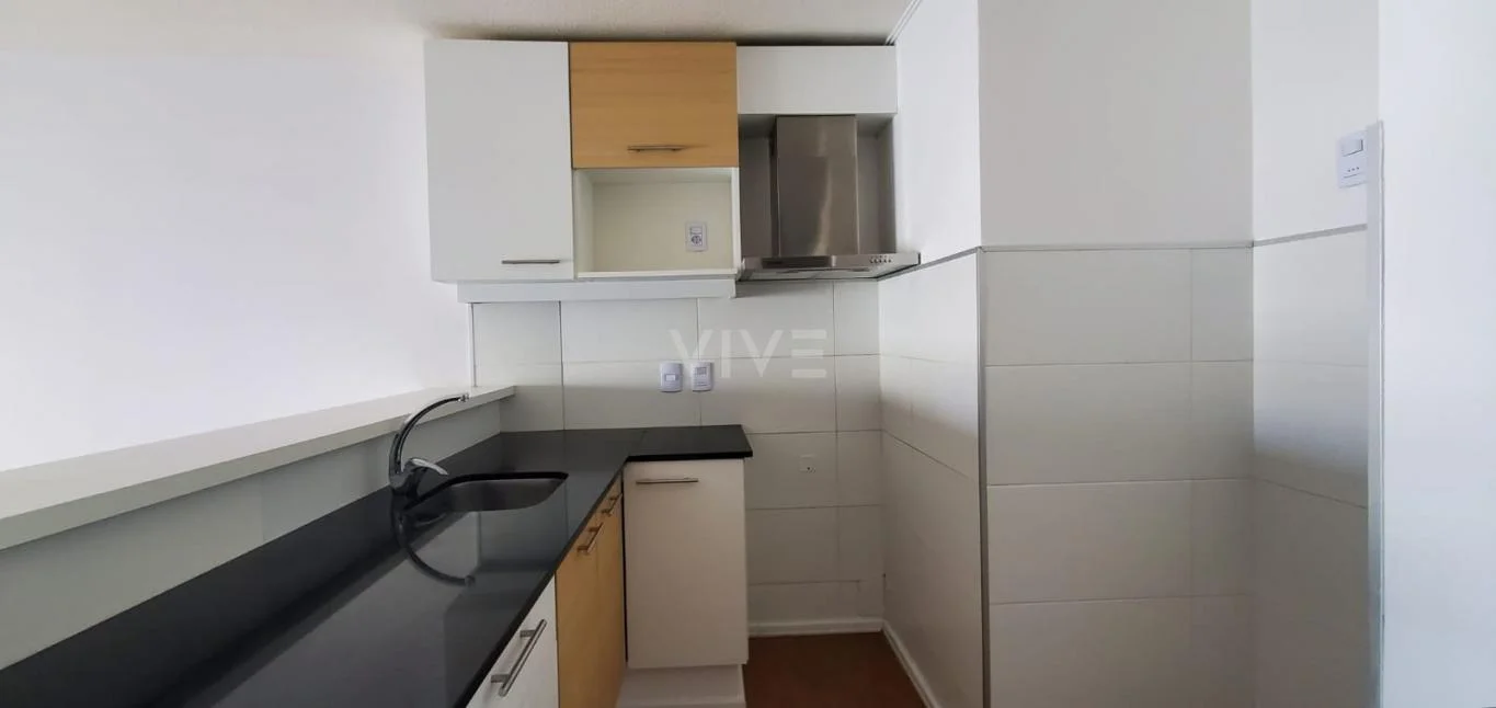 Cocina integrada con placares bajo mesada y aéreo, barra desayunadora y campana de extracción.