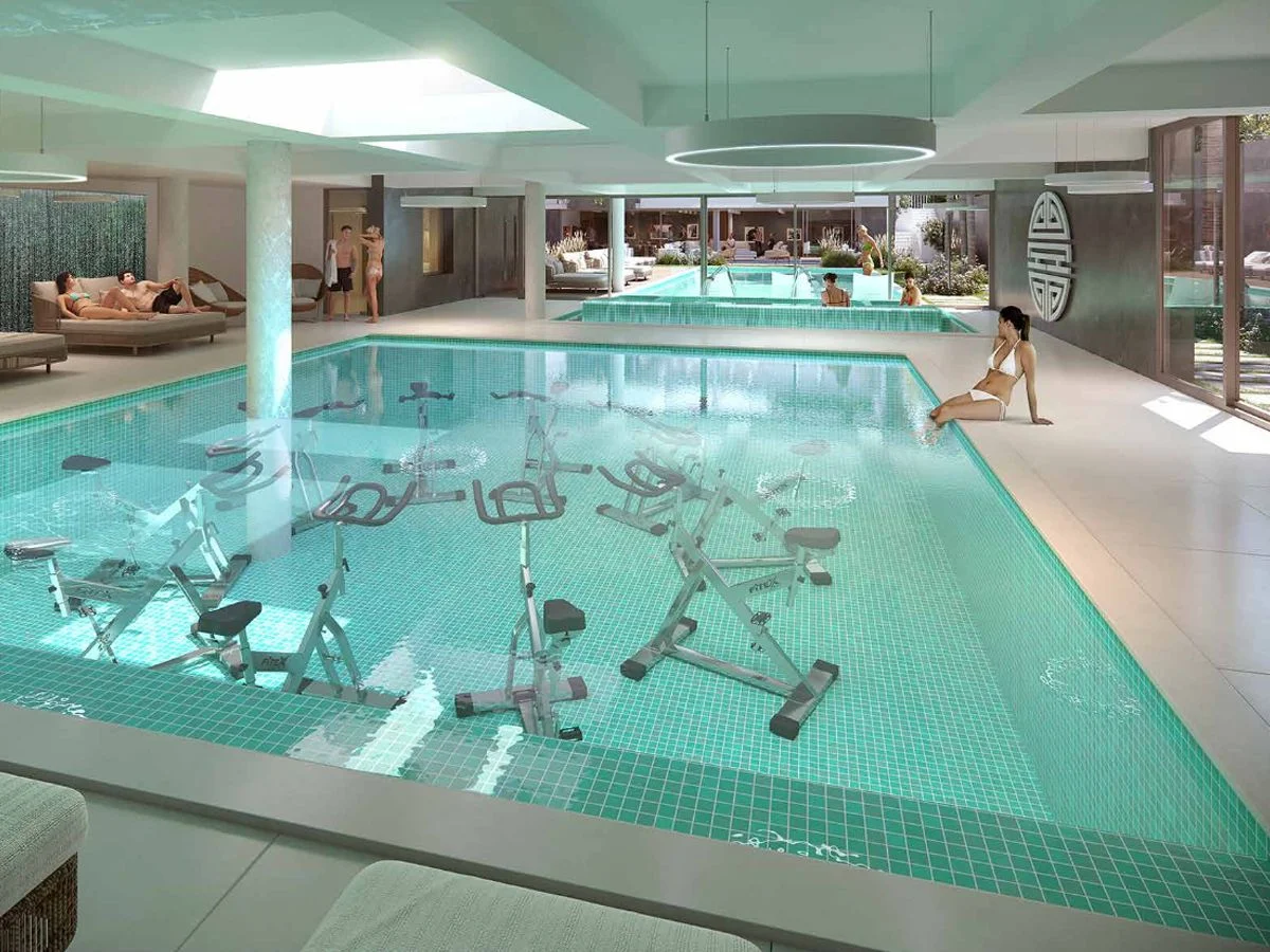Piscina interior, piscina exterior, hidromasaje, spa, circuito de hidroterapia terapeútico, sala de masajes, sauna seco, sala de gimnasia, estiramiento y meditación, sala de relax, sala de estar, sala de juegos, 2 barbacoas completas equipadas para 20 servicios cada una, gimnasio de vanguardia, vestuarios masculinos y femeninos, sala de reuniones, consultorio médico, alive path: camino de contraste térmico.