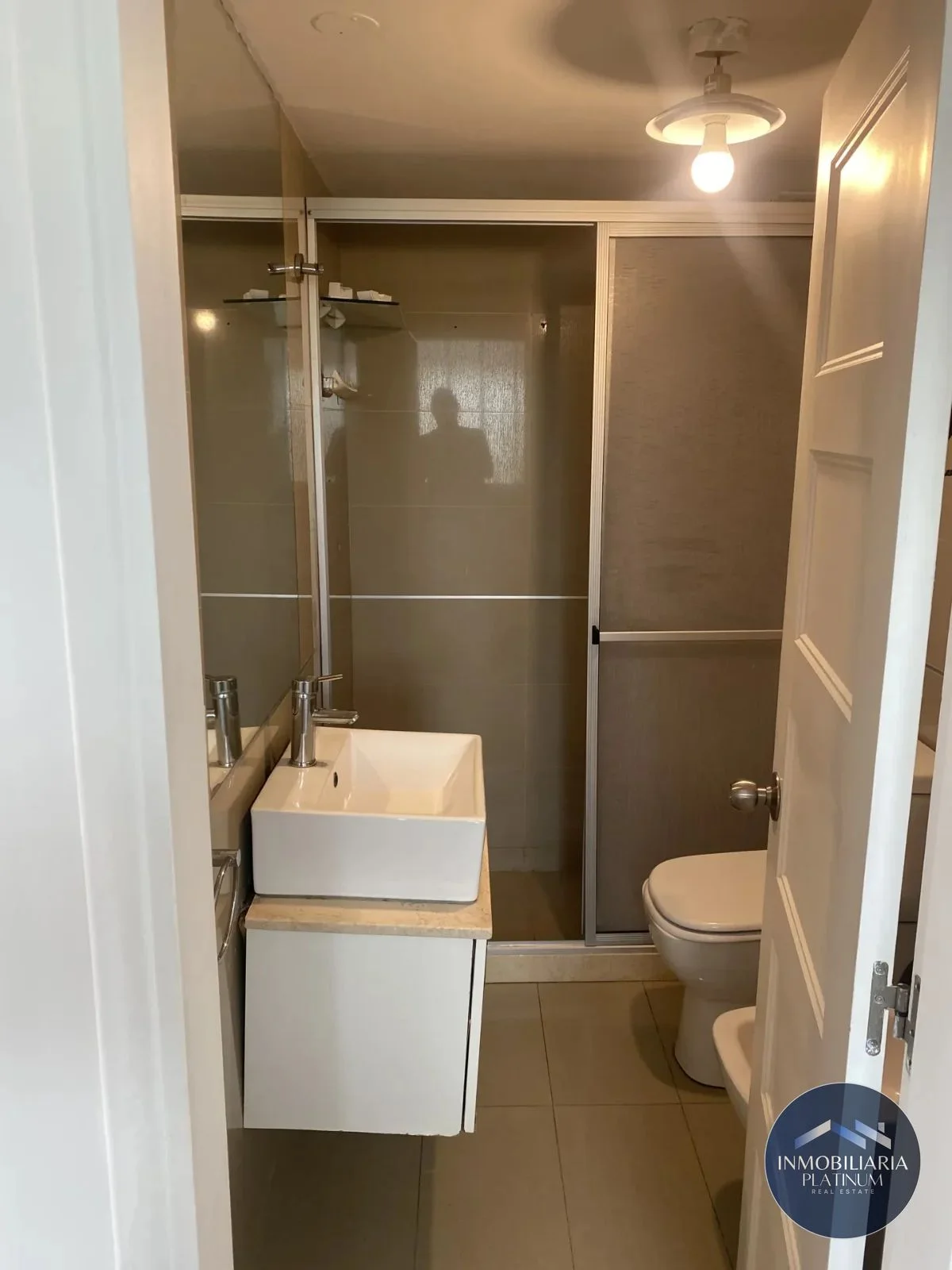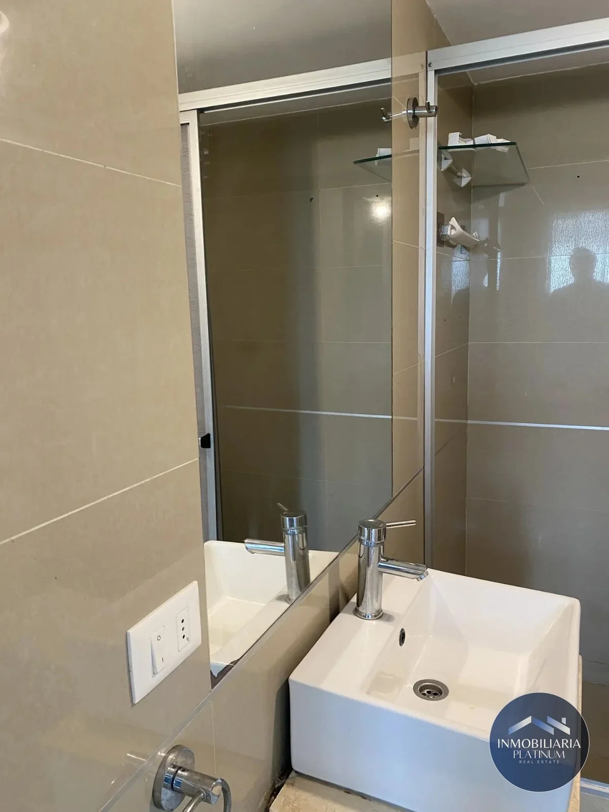 - Baño con porcelanato y ducha con mampara