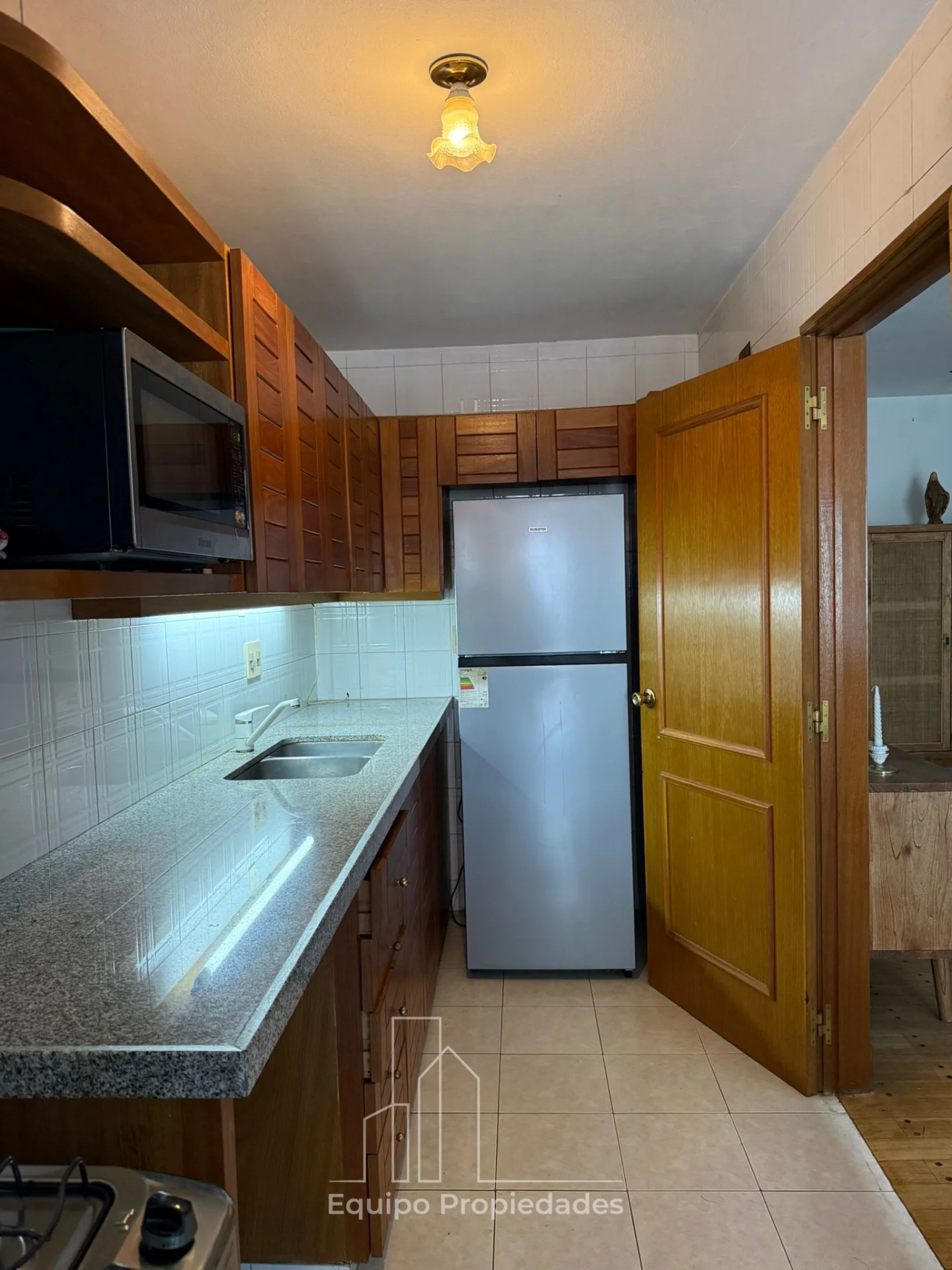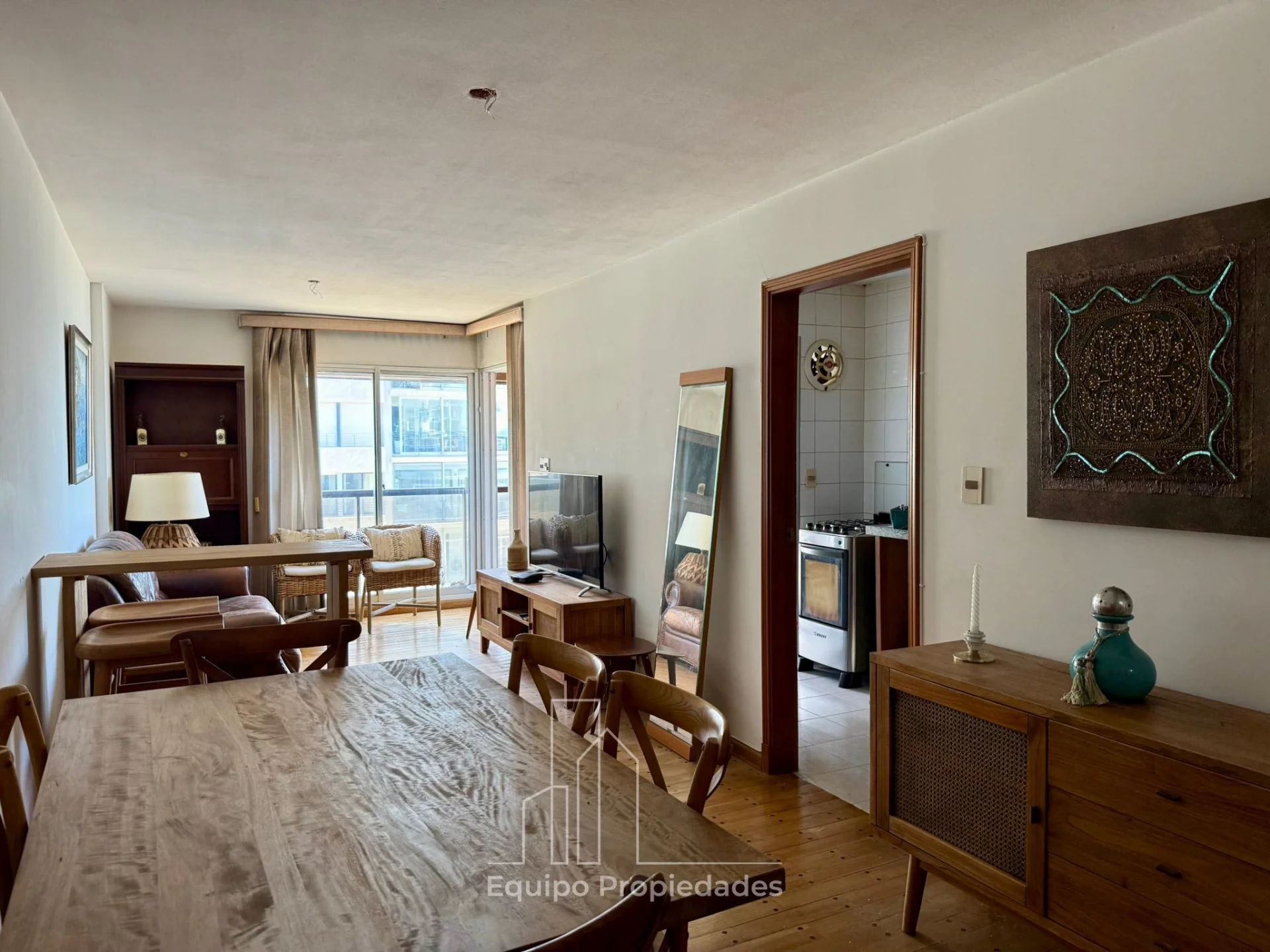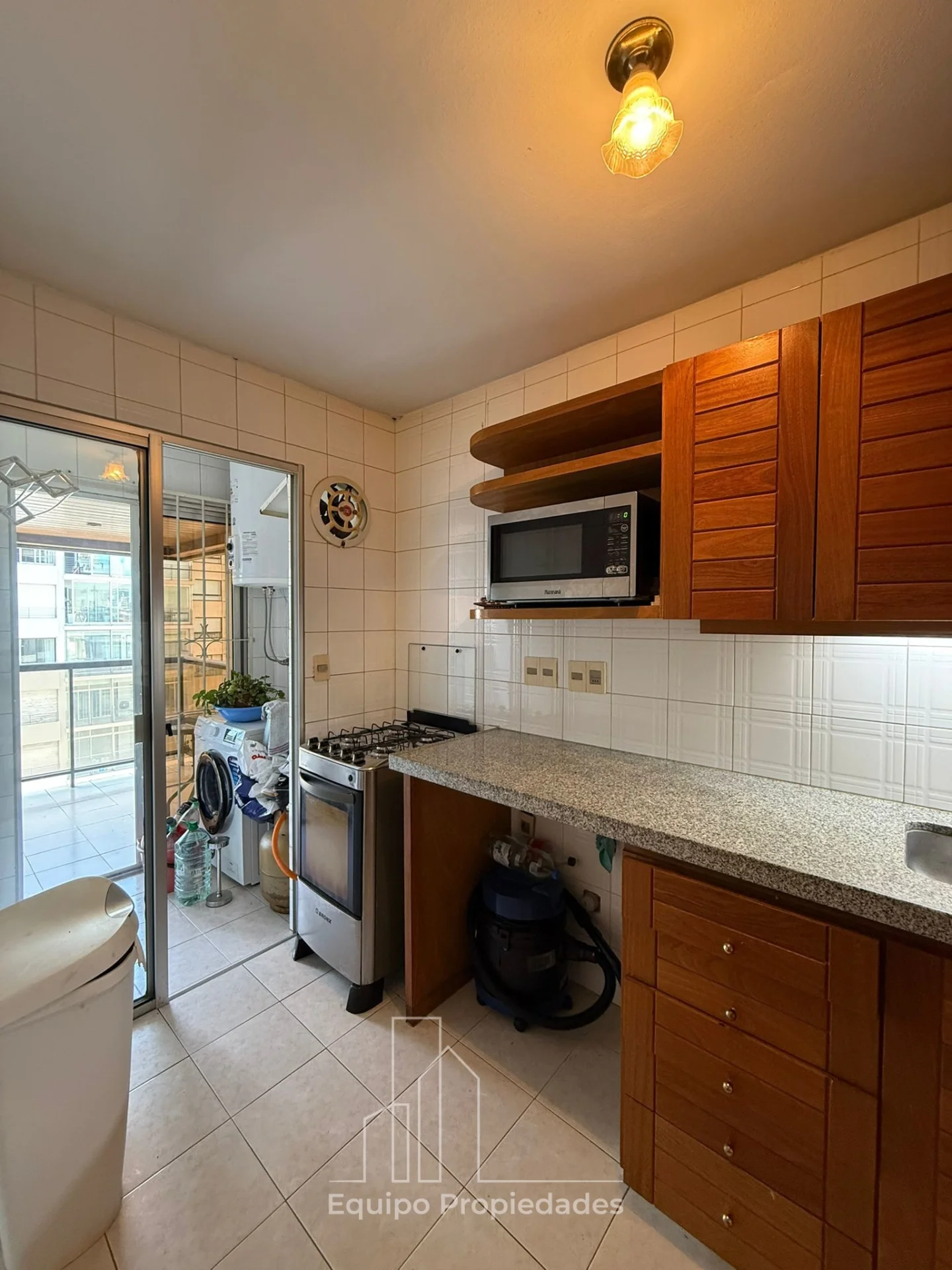 Living comedor con salida a muy lindo balcón al frente, cocina definida con terraza lavadero.