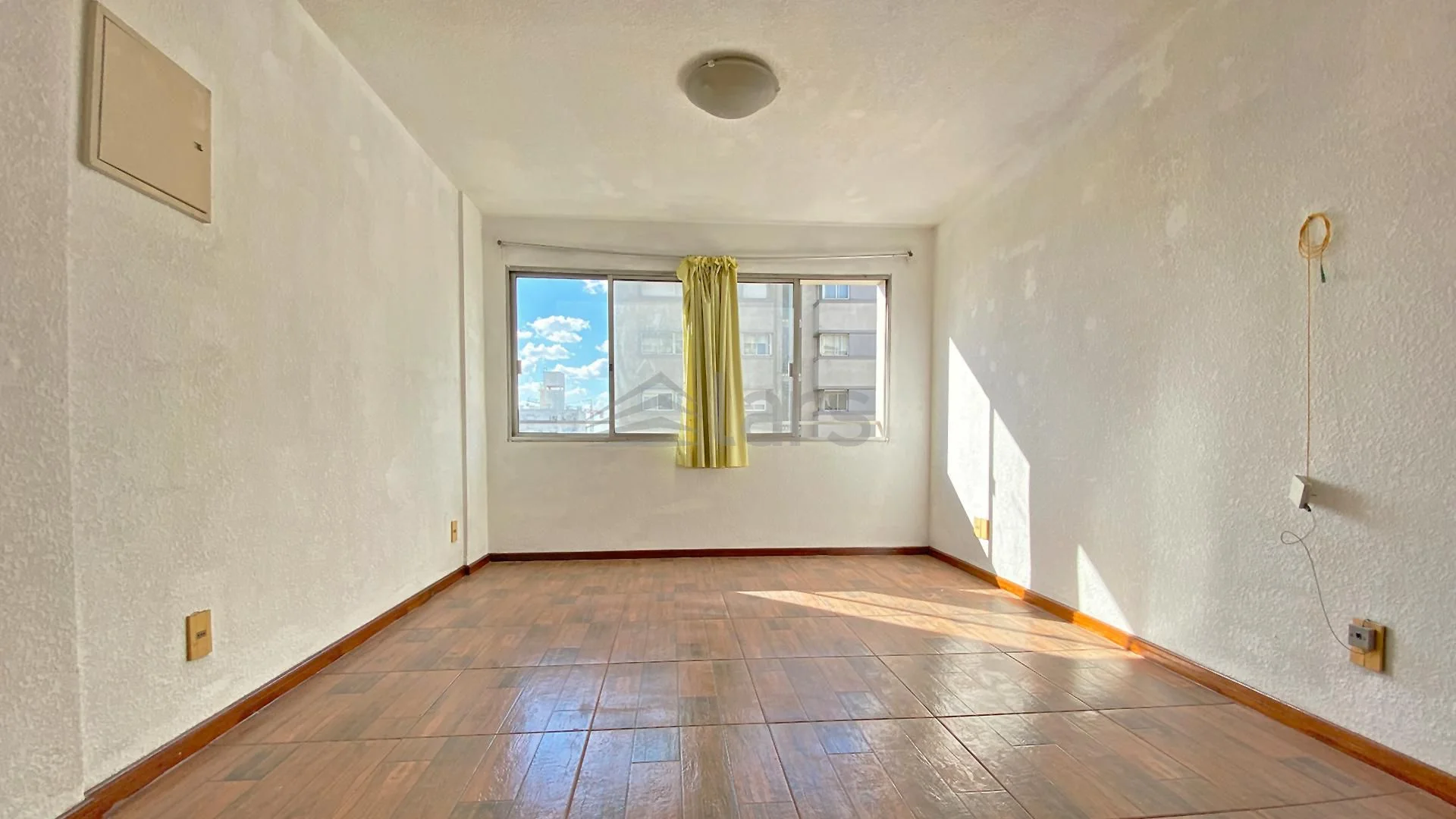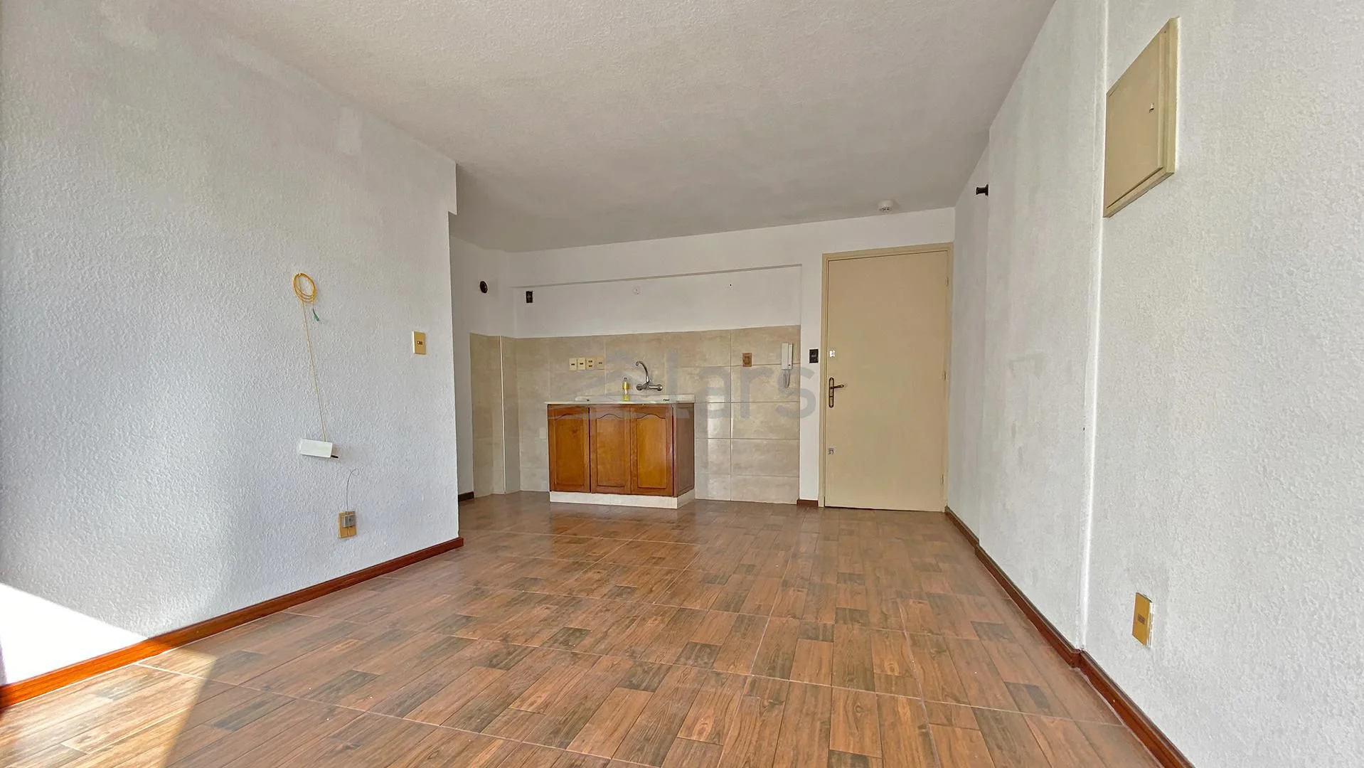 Propiedad al frente en 7° piso, living comedor con cocina integrada, dormitorio con placard y baño. El edificio cuenta con ascensor, portería física 24hs y videovigilancia.