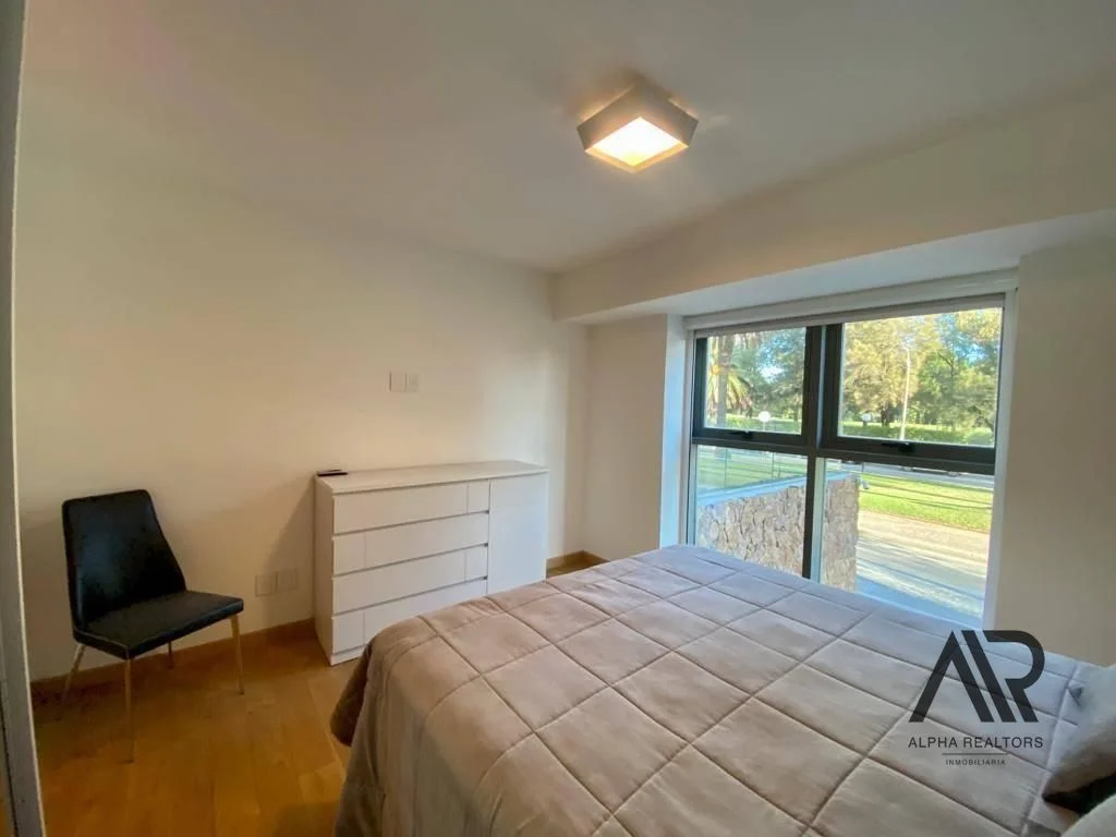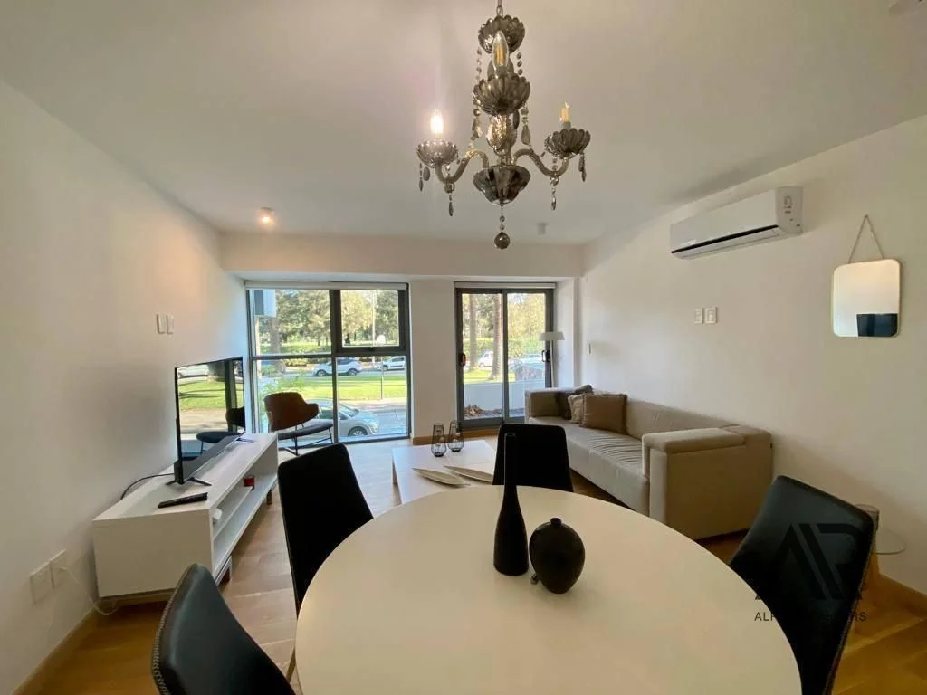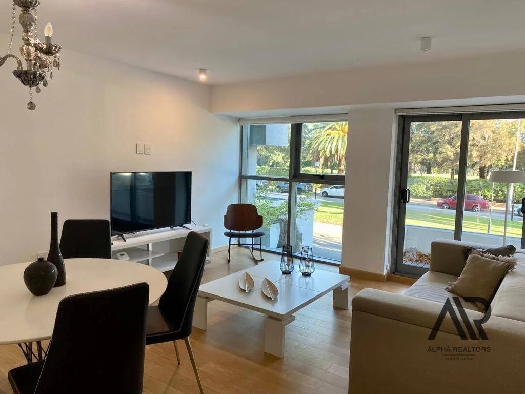 Alquiler de hermoso Apartamento amoblado consta de 2 dormitorios  en suite, baño social , amplio living , cocina definida, balcón al frente y 1 garaje. Ubicado en la primera línea sobre el Club de Golf, Julio Ma. Sosa y Patria. Un edificio de nivel internacional con exclusivos apartamentos en venta con renta.