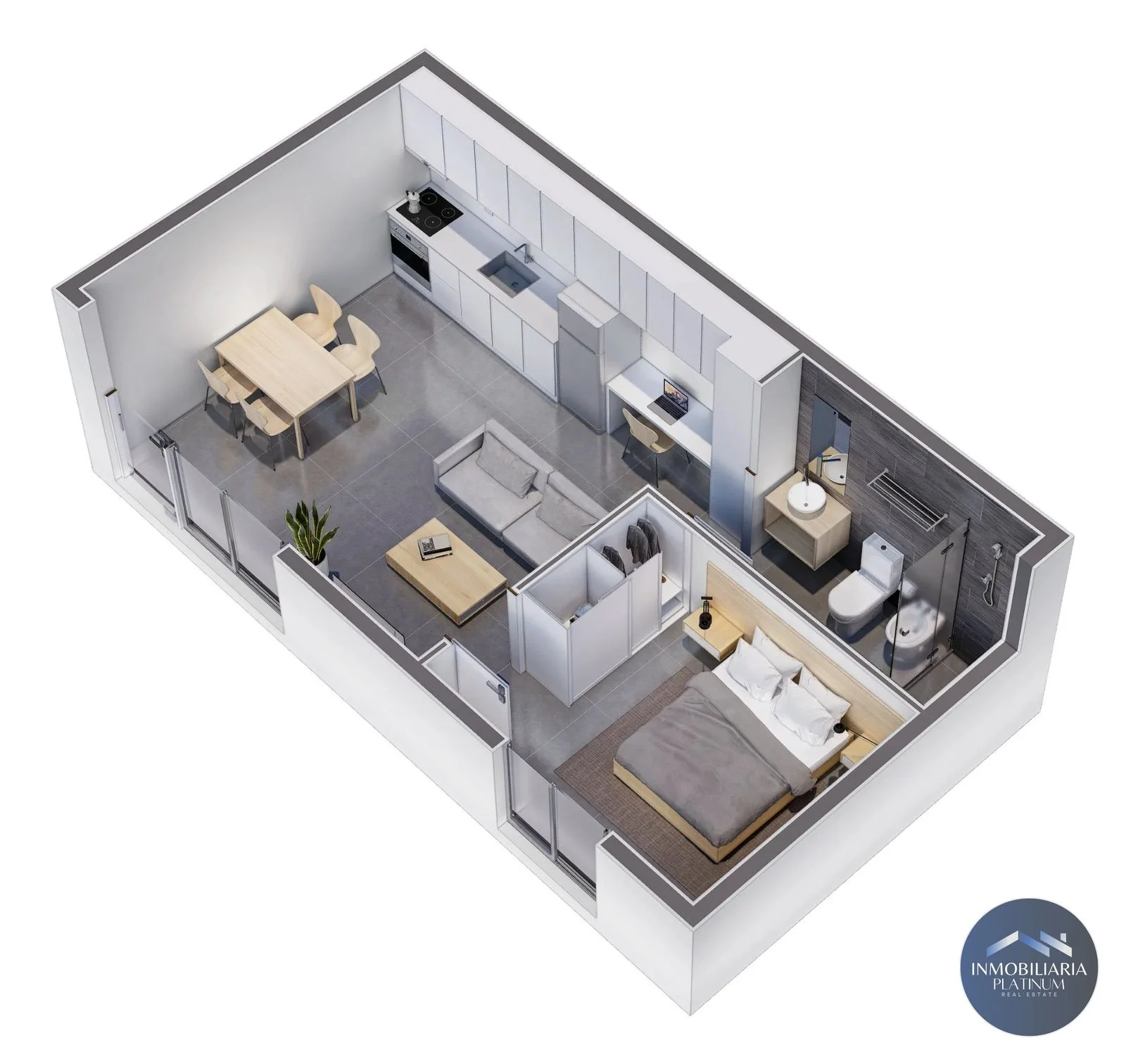 - Ambientes: 1 dormitorio, 1 baño, cocina