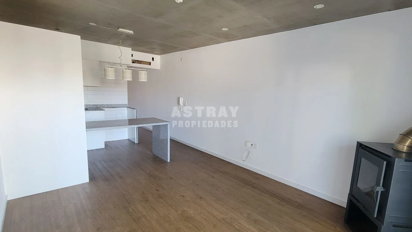 Living comedor muy luminoso con estufa de alto rendimiento y salida al balcón al frente.