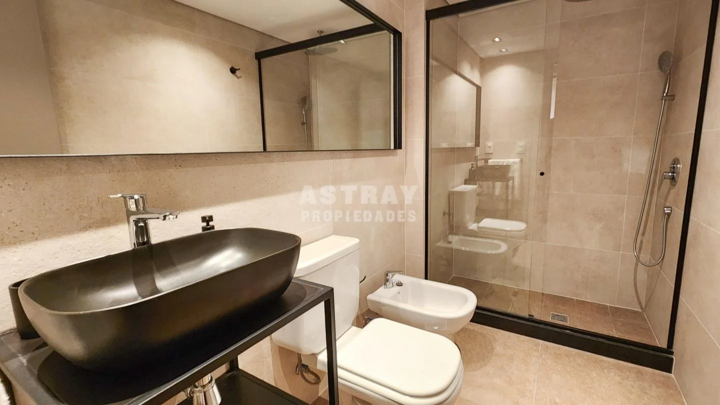 Predio con amplios jardines y variedad de amenities: piscina, solarium, gimnasio, sauna, salón de fiestas y laundry.