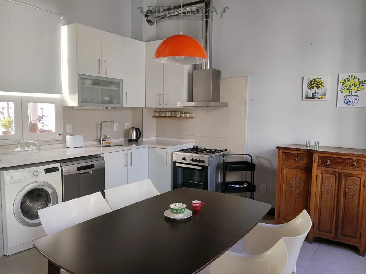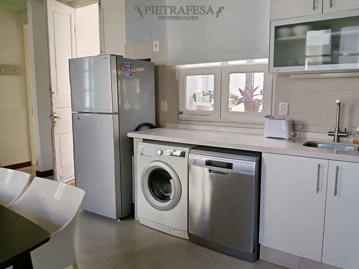 Equipamiento: lavarropas, heladera, lavavajillas, cocina a gas, calefón a gas, aire acondicionado y calefactor eléctrico, tostadora, mixer y jarra eléctrica, vajilla completa y utensilios de cocina, sábanas y toallas (2 juegos). Cama doble, armarios, mesa de noche, lámparas y escritorio, cocina integrada con mesa para 4 personas y alacenas, espacio living con sofá-cama, biblioteca y pequeño bar.