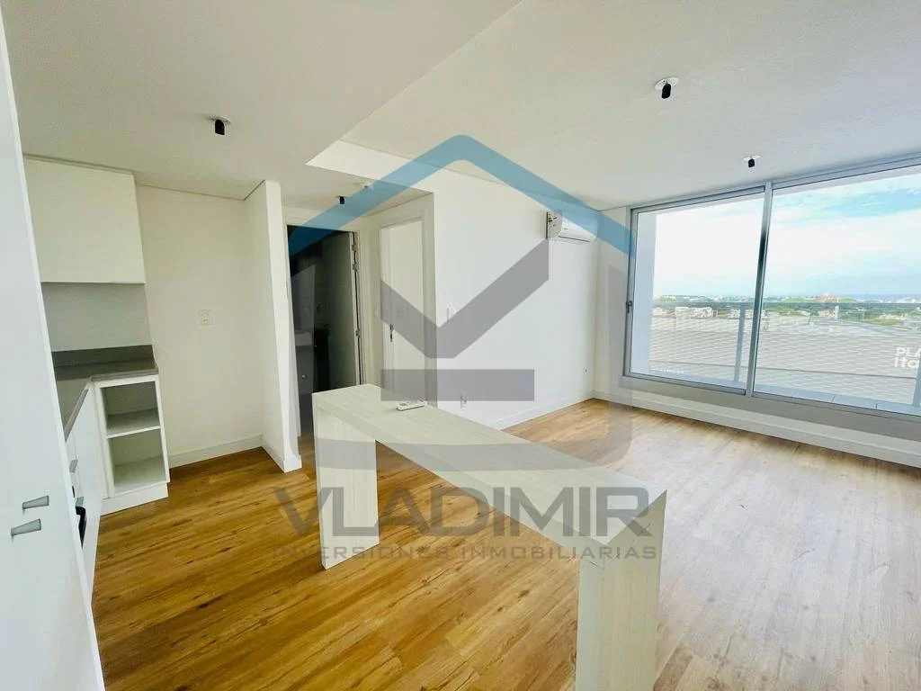 Unidad en 8º piso, cuenta con Cocina integrada al frente con mueble aéreo, bajo mesada y placard, con barra desayunadora. Cocina con anafe y campana, conexión lavarropas adentro del placard de la cocina y para termofón. Living - comedor con aire acondicionado y salida a terraza, hermosa vista, bien depejada.