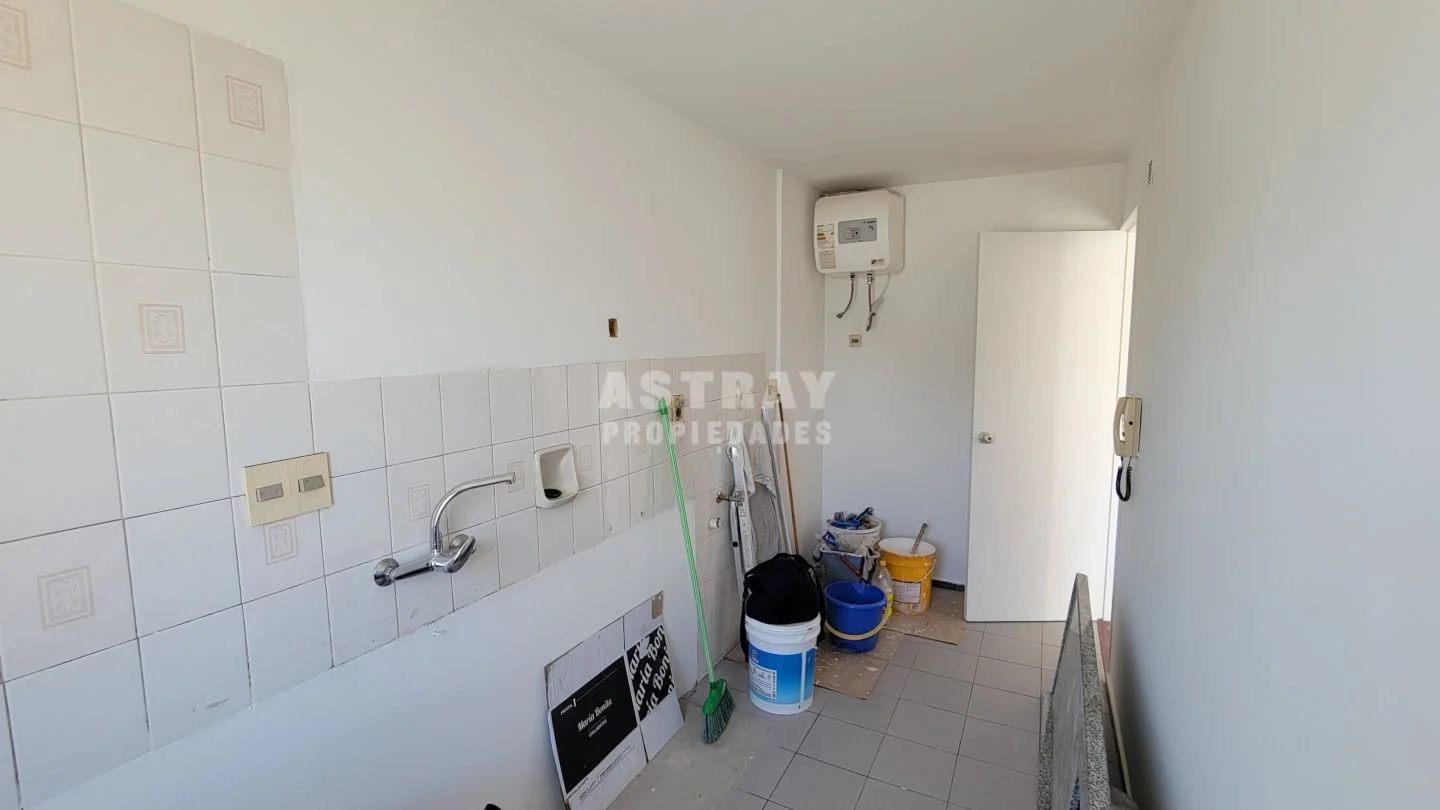 Cocina definida, con placares bajo y sobre mesada (próxima colocación), con calefón de 30L y conexión para lavarropa.