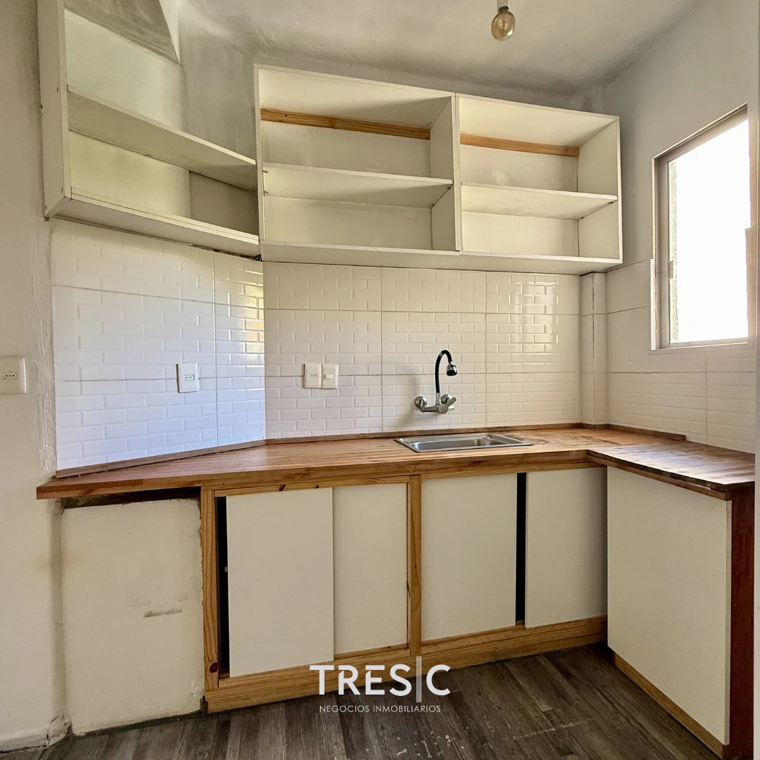 Dispone de cocina independiente de generosas dimensiones, con barra desayunadora, excelente capacidad de almacenamiento y baño social en este sector.