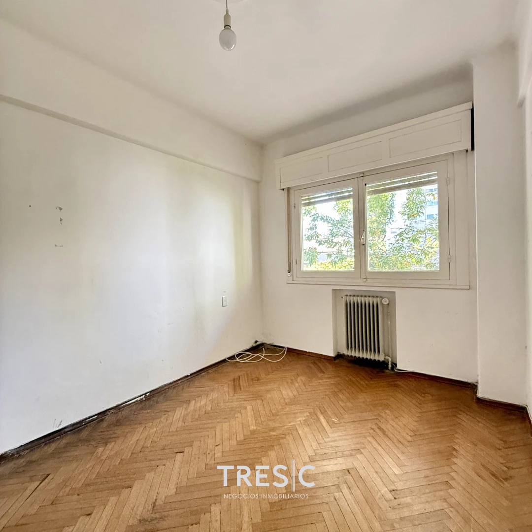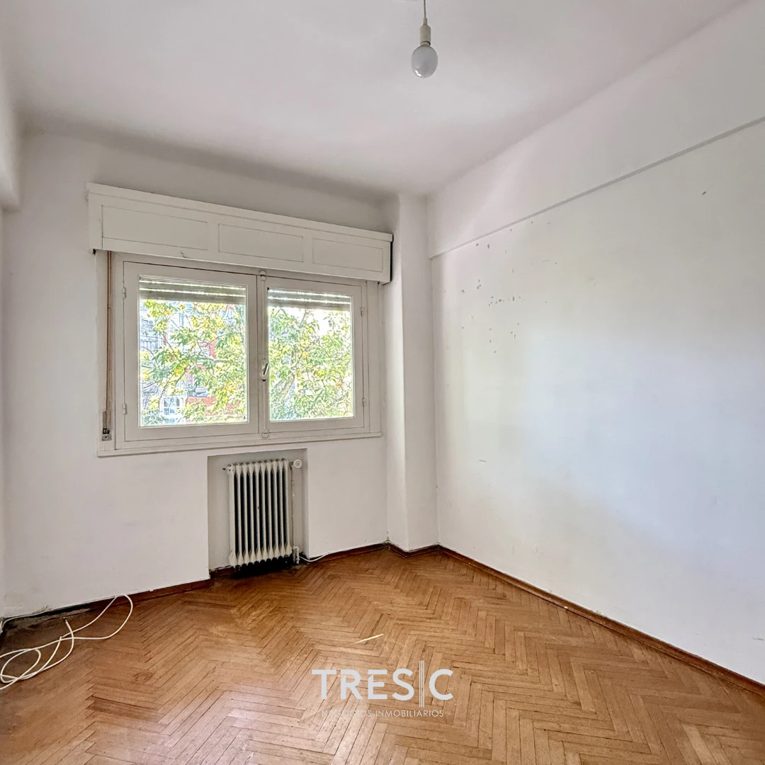 Uno de los dormitorios se ubica al frente, también con muy buena entrada de luz natural, mientras que a través del pasillo de distribución encontramos el baño completo del apartamento y, por último, los otros dos dormitorios. Todos de gran tamaño.