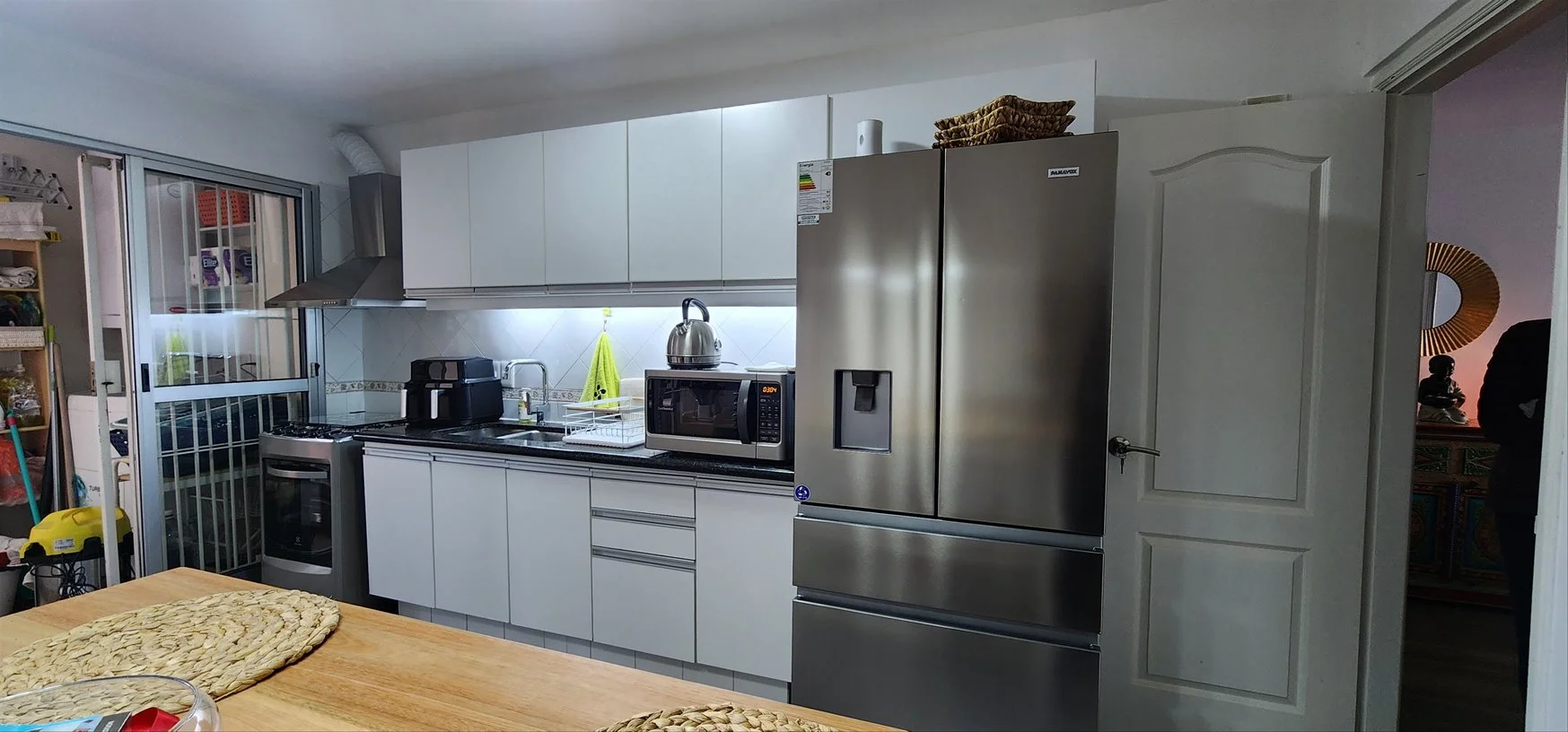 Cocina definida con muebles aéreos y bajo mesada