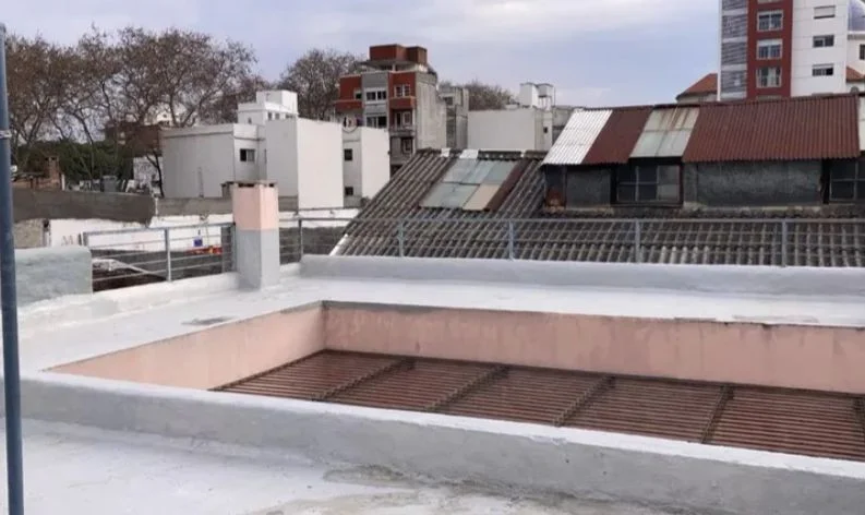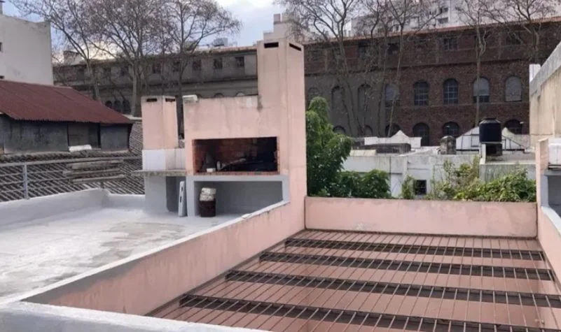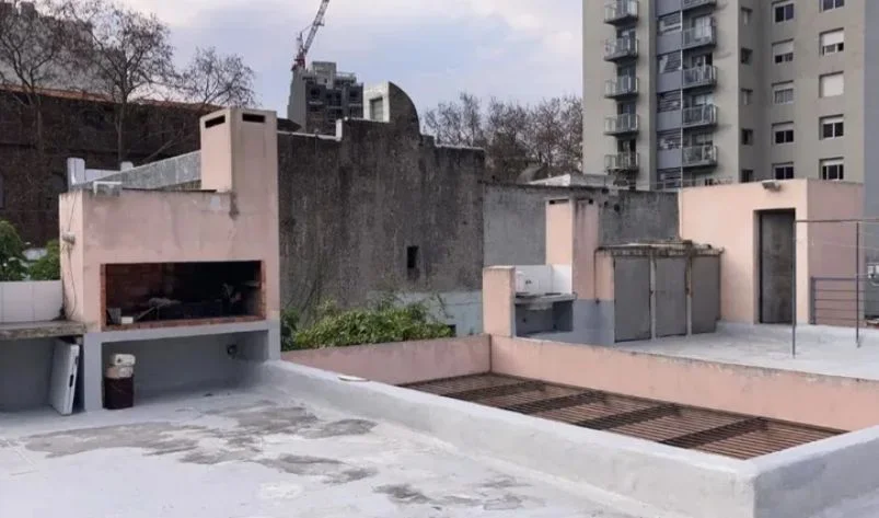 En azotea de edificio (1 piso por escalera) gran espacio de uso común con parrillero, sector para colgado de ropa y cubículos cerrados para lavarropas.