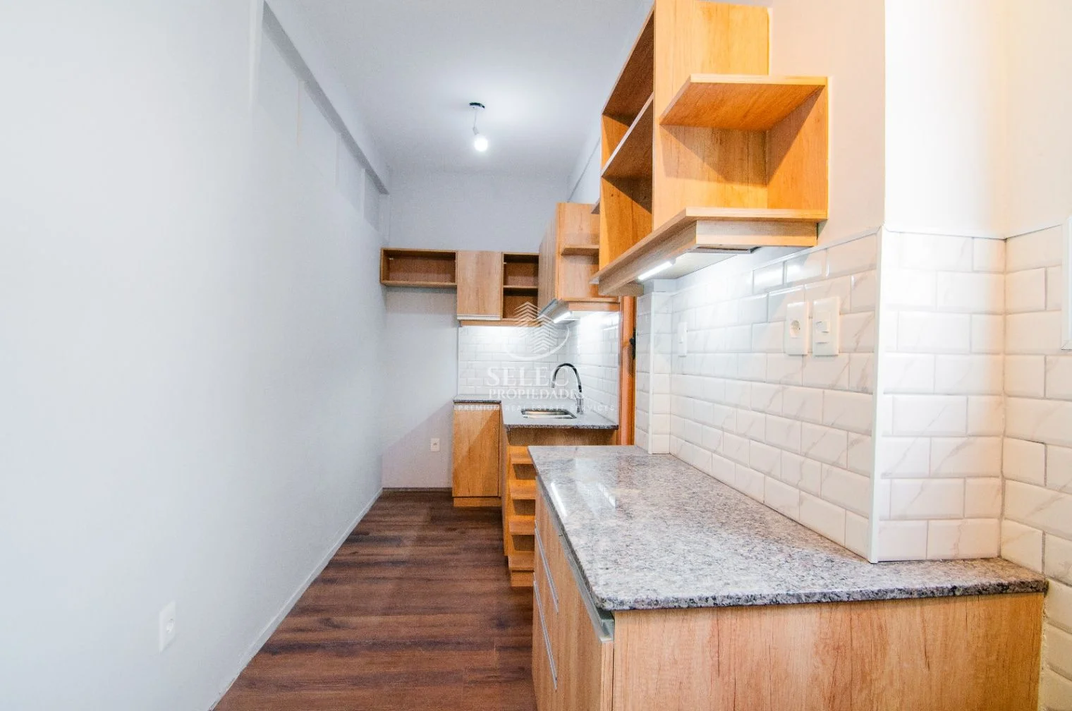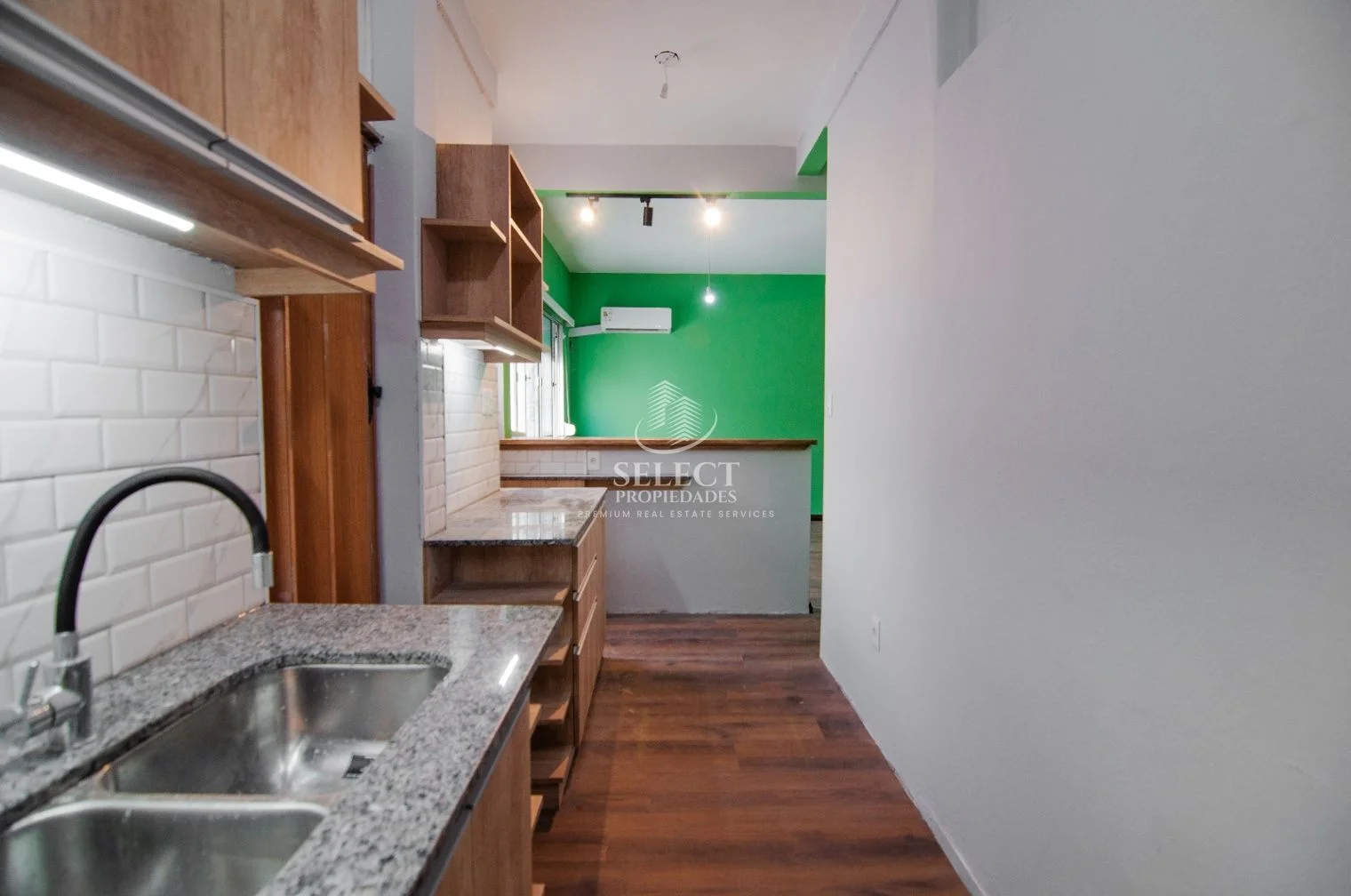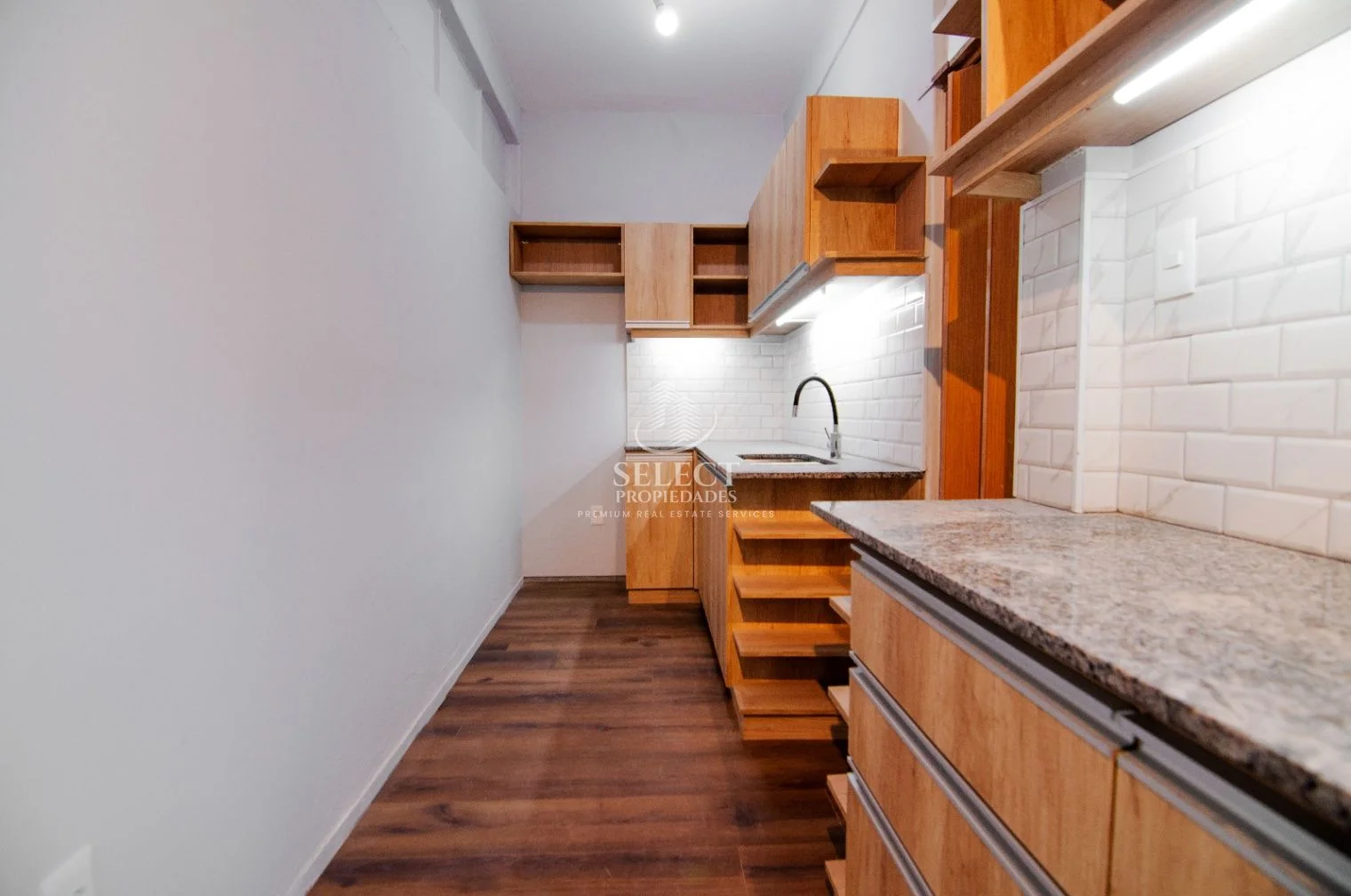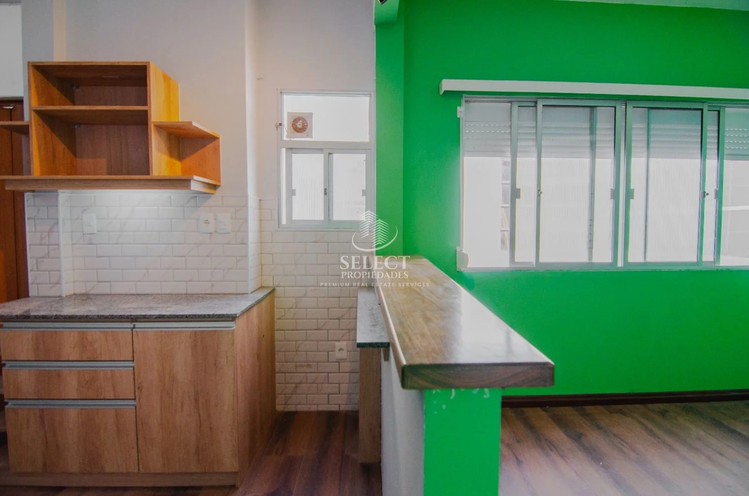 Dispone de cocina integrada, completamente renovada, equipada con muebles aéreos y bajo mesada, brindando practicidad y buen espacio de guardado.