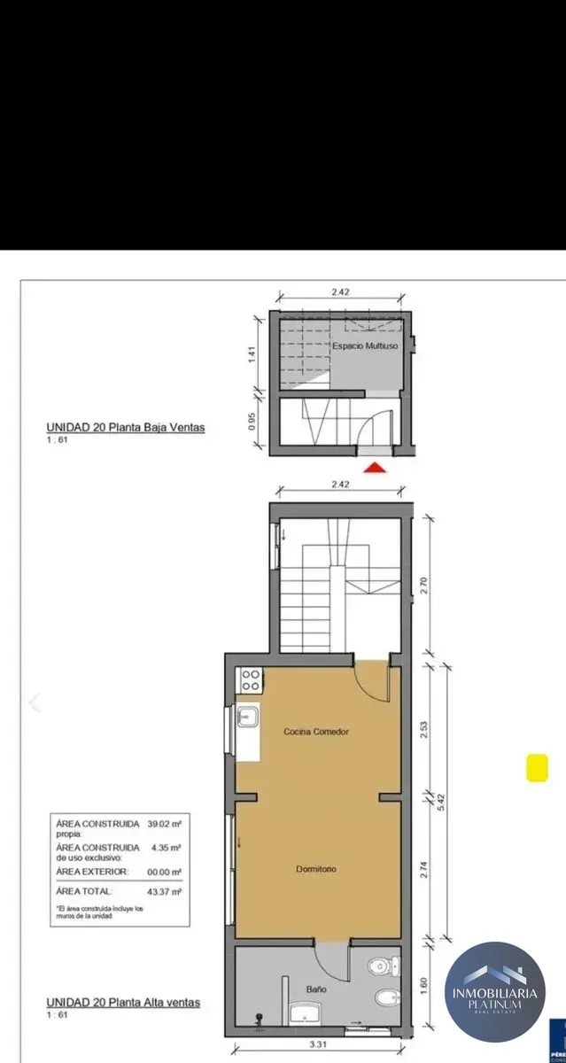 - Superficie total: 43 m² (43 m² cubiertos)