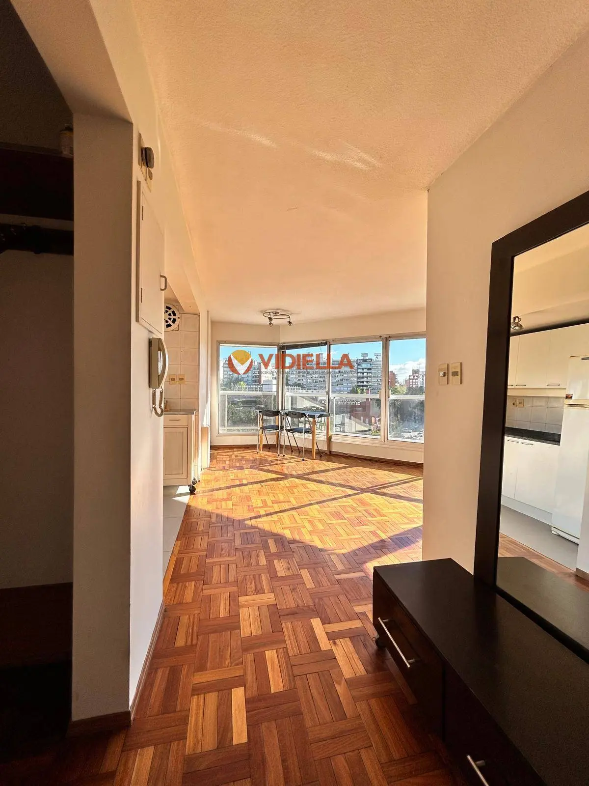 Se trata de un apartamento muy bien ubicado en un piso alto con muy linda luz Cuenta con living comedor con cocina integrada Un dormitorio Baño completo con conexión lavarropa Vigilancia