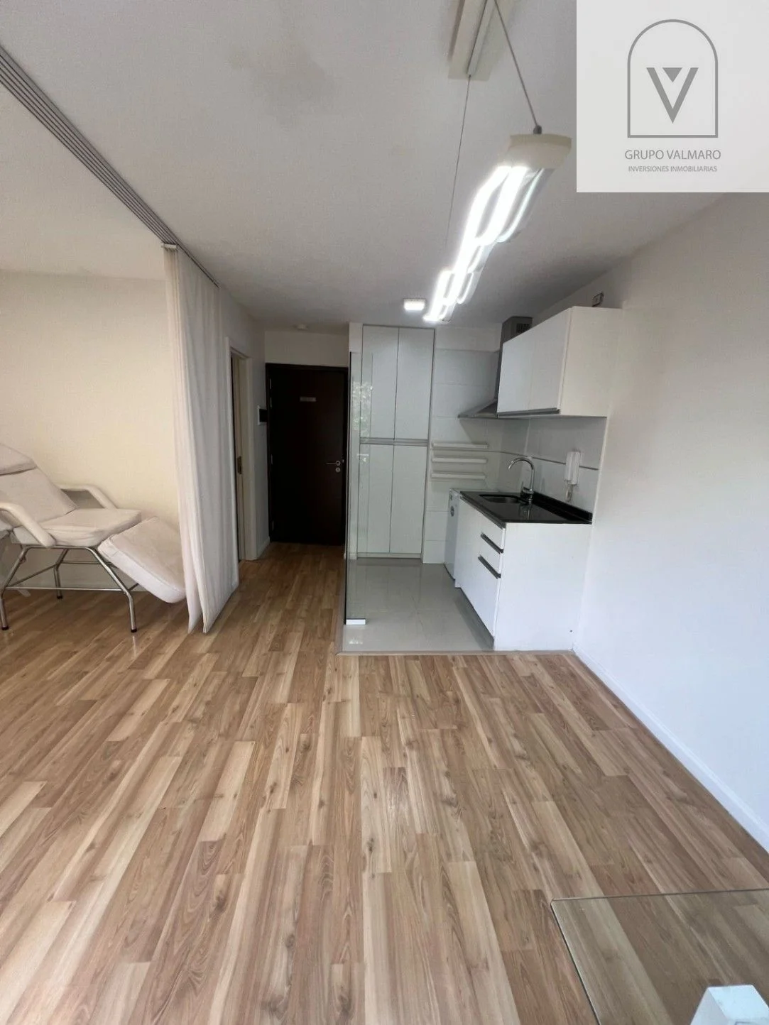 El apartamento dispone de un ambiente principal versátil, ideal para adaptar sector de living y descanso, acompañado de kitchenette integrada.