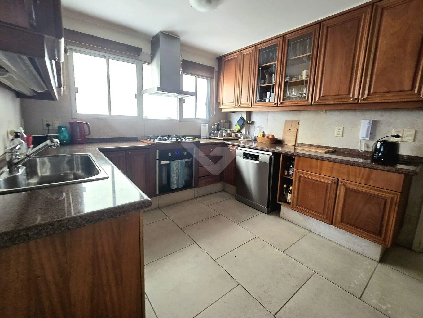 Estar y comedor diario. Cocina definida de buen tamaño que incluye heladera, microondas, lavavajillas, anafe, campana y horno.