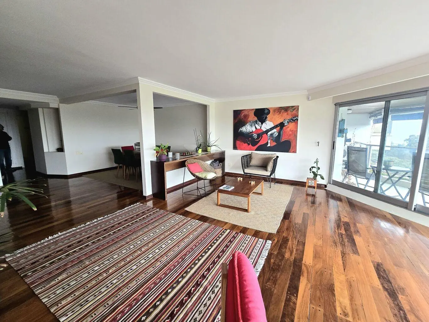 Pisos de lapacho en living comedor, espacio amplio, con ventanales y terraza.