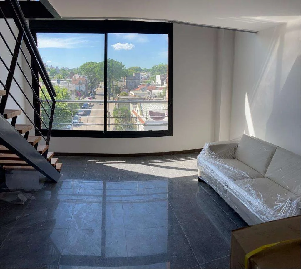 Área de estar amplia y despejada, con gran ventanal que aporta excelente iluminación natural y vista a la calle. Terminaciones de calidad con piso de porcelanato.