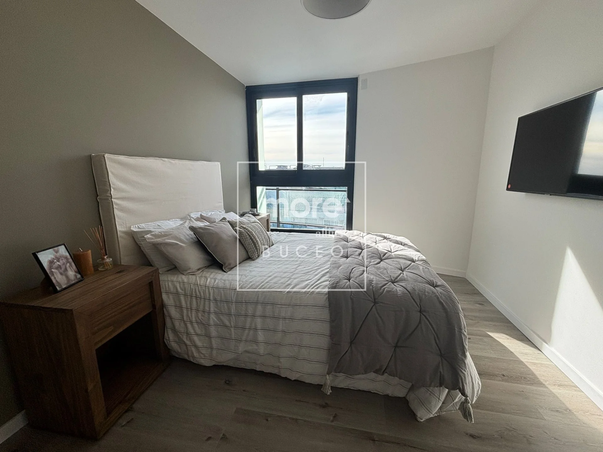 El balcón con vista despejada aporta un plus de aire y luz natural, creando un espacio perfecto para relajarse.