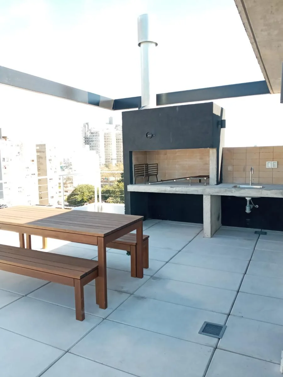 • Cocina con muebles bajo y sobre mesada, campana extractora.