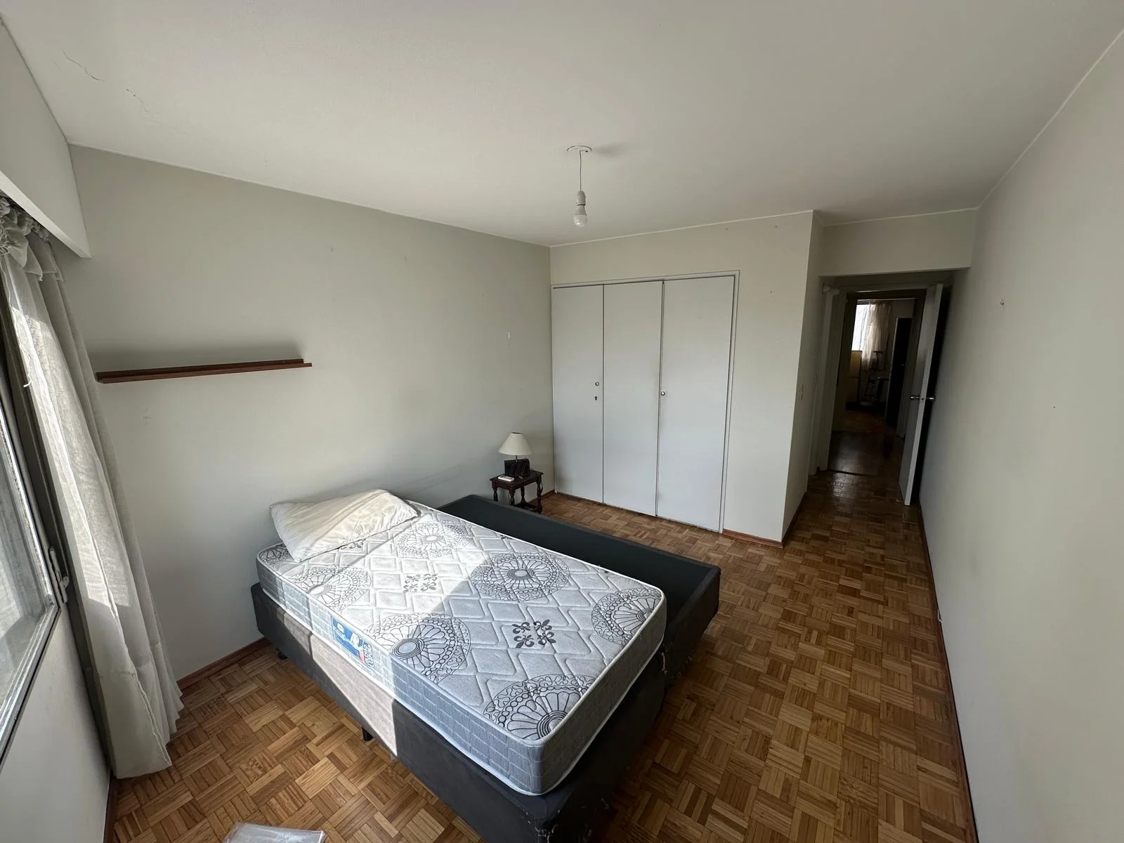 - dormitorio secundario de 9m2 con piso de parquet plastificado, cortinas de enrollar y gran placard embutido