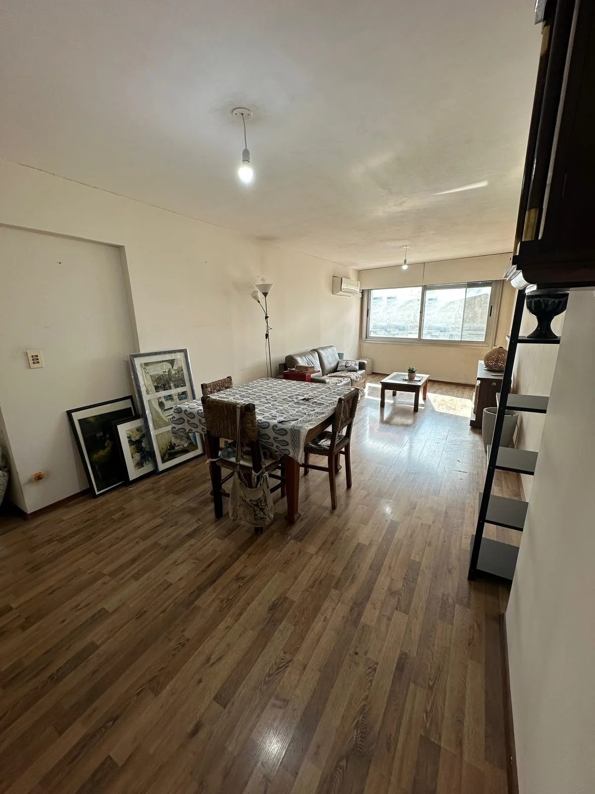 - living comedor de 20m2 con pisos de parquet plastificado y gran puerta ventana hacia terraza de 4m2 sobre 18 de Julio, con cortinas de enrollar
