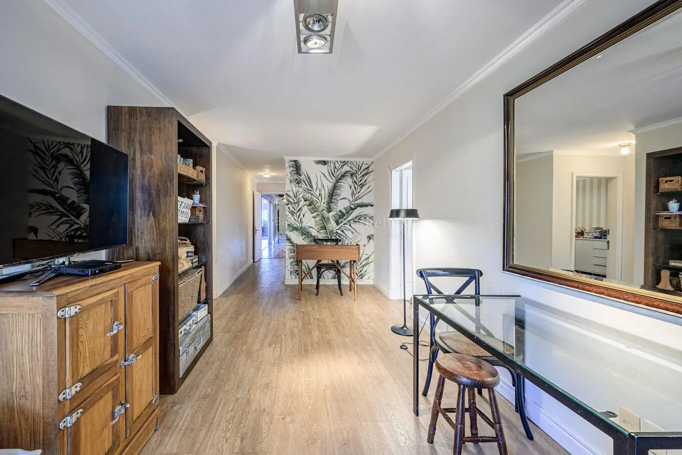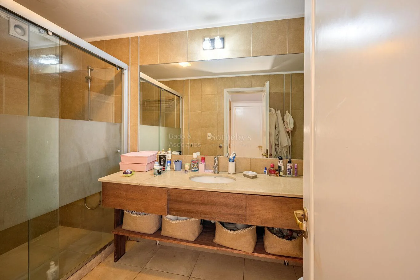 El apartamento cuenta con pisos de lapacho que aportan calidez y elegancia. El área social incluye un amplio living y comedor con estufa a leña, conectado a una terraza techada con parrillero, perfecta para reuniones y momentos de relax. Además, dispone de un despojador junto a la entrada principal.