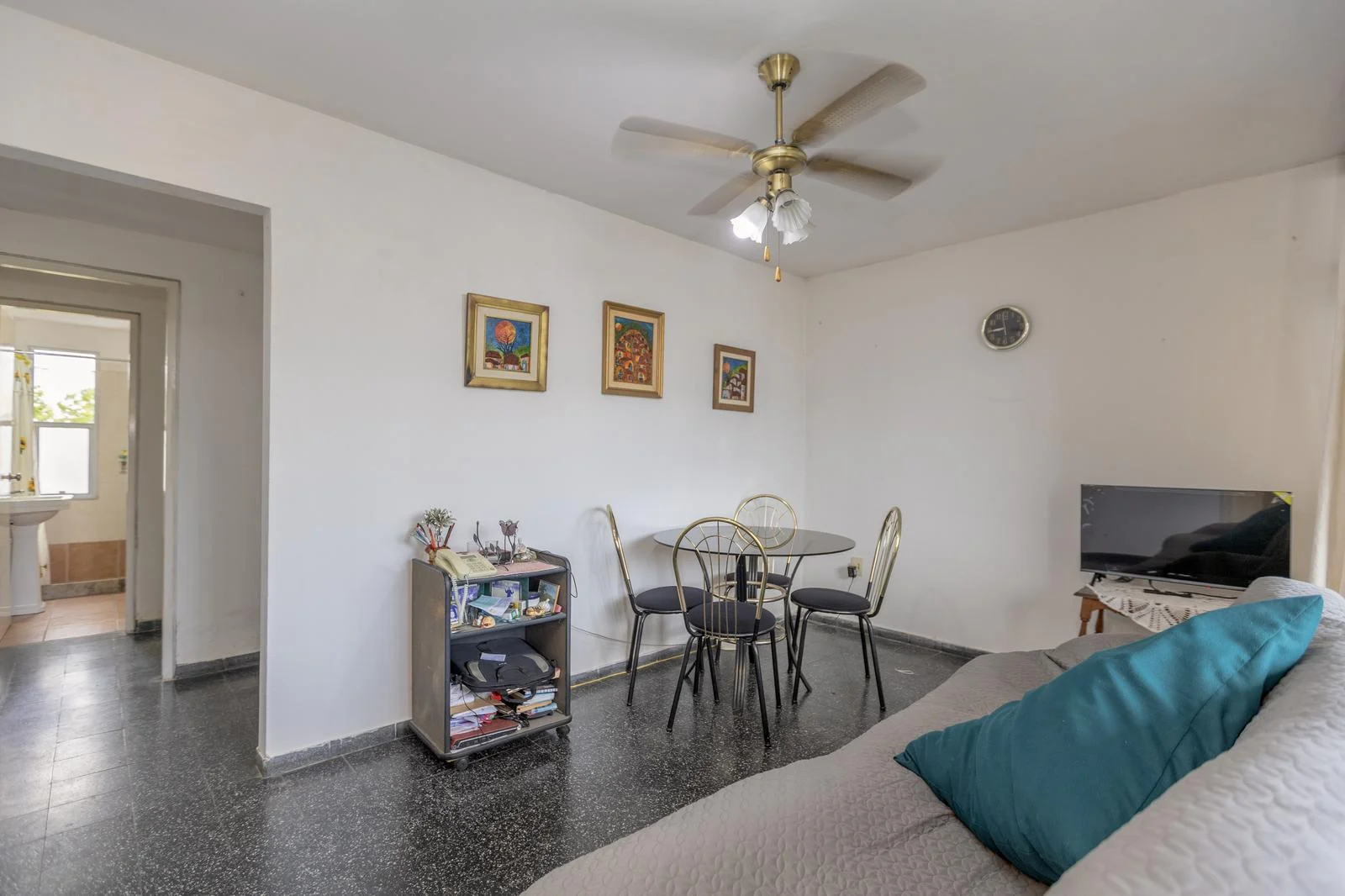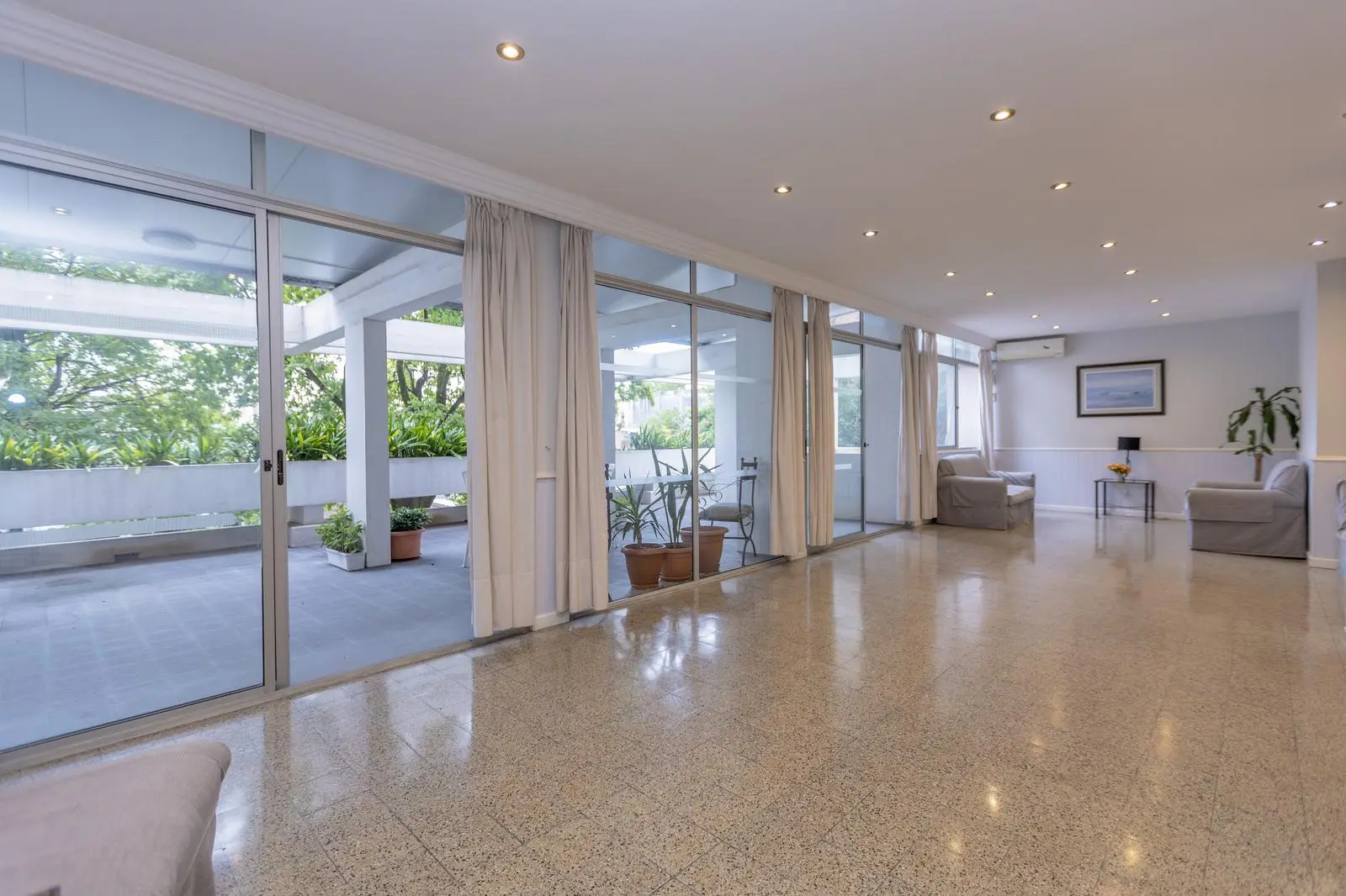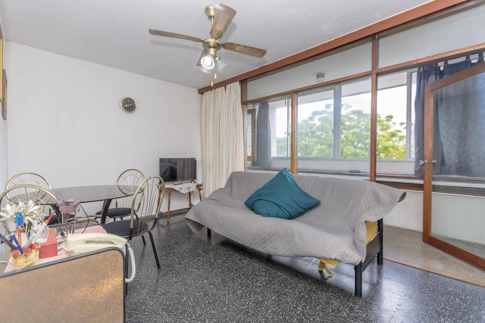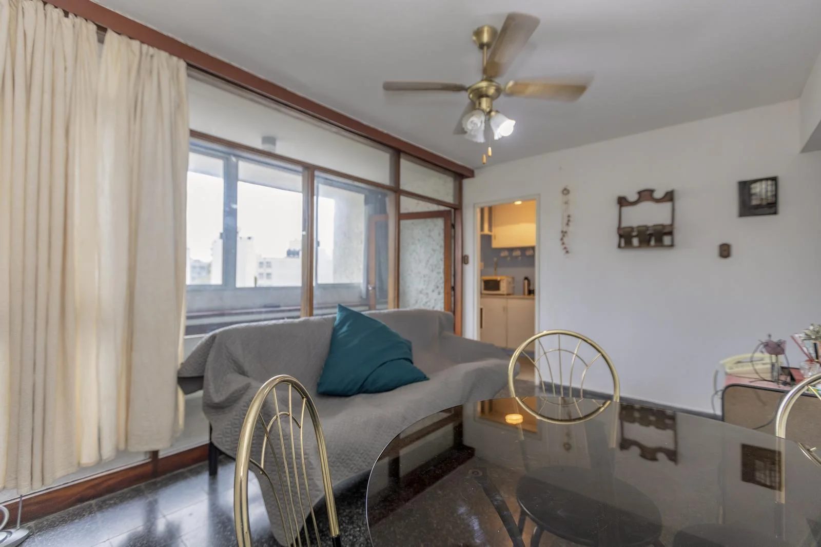 Living-Comedor con salida a una terraza cerrada, ideal para usar como escritorio.