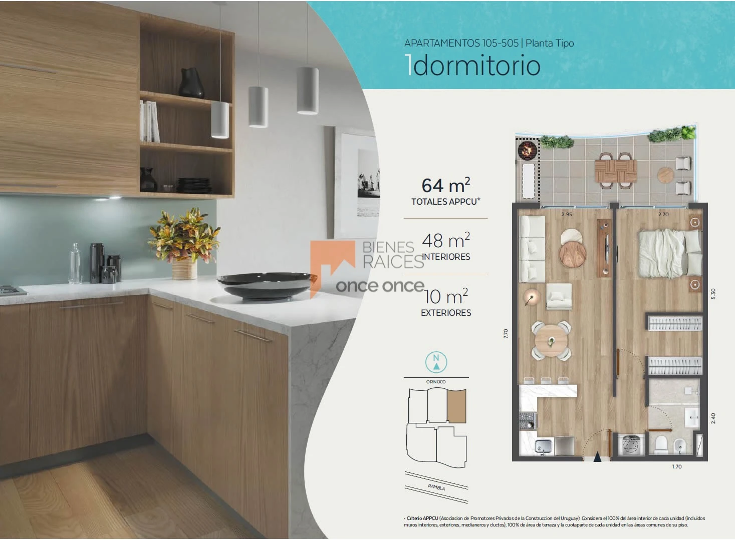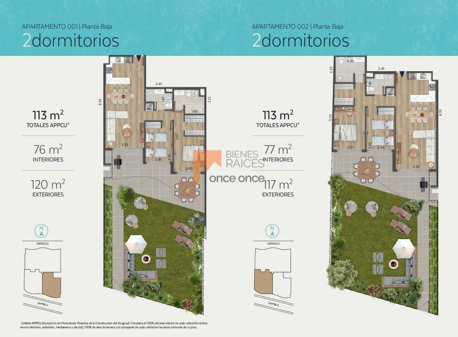 Las unidades se destacan por sus espacios luminosos, dimensiones generosas y terminaciones de calidad, en un entorno residencial privilegiado frente a la rambla.