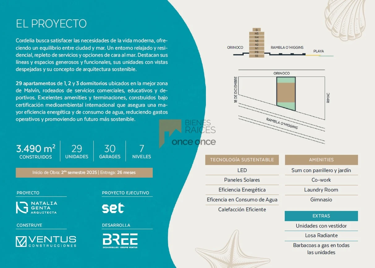 Ubicado sobre Rambla O’Higgins, en una de las zonas más buscadas de Malvín, se desarrolla Cordelia, un edificio de arquitectura contemporánea que combina diseño, eficiencia energética y excelentes vistas.